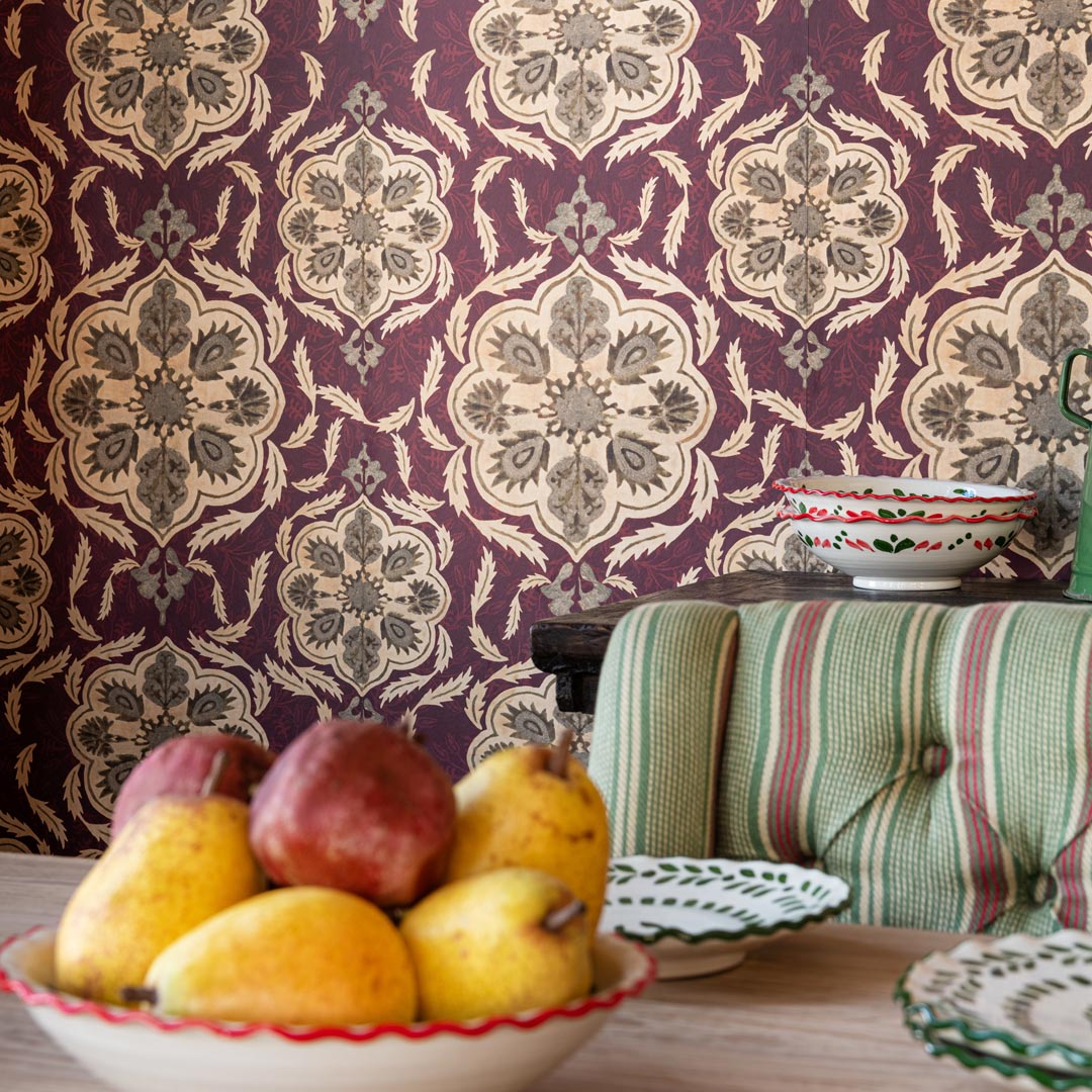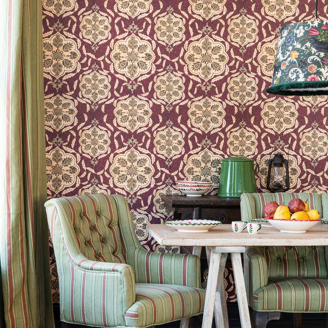 Available in rich Burgundy and deep Green hues, OTTOMAN is a nod to the vibrant colours found in nature. Its intricate patterns and mesmerizing motifs are a reflection of the Delta's diverse wildlife and vegetation. As you adorn your walls with this exquisite wallpaper, you'll instantly feel a connection to the bountiful wetlands and the rich cultural heritage of this stunning region.
