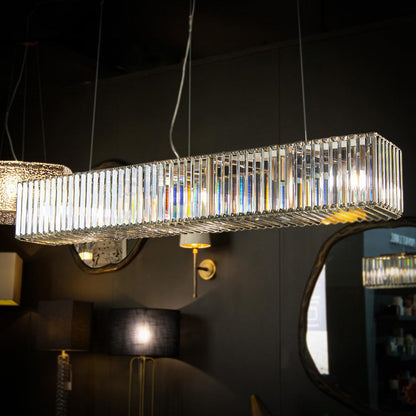 Imagine dining under this magnificent masterpiece, as the crystal rods refract the light and create a dazzling display of brilliance. The interplay of reflections is truly enchanting, adding a touch of glamour to any occasion. Whether you're hosting a grand dinner party, enjoying a quiet meal with loved ones, or simply admiring its beauty in your kitchen, the Panora chandelier will elevate your dining experience to new heights.