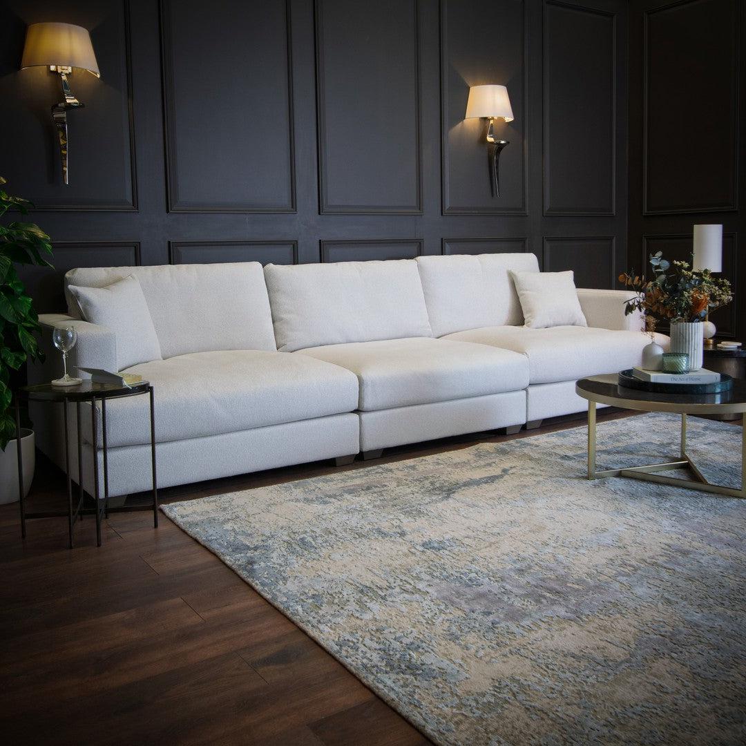 The Ralph Sofa by RV Astley is a stunning blend of sophistication and comfort, designed to enhance any living space. Upholstered in a soft ice ivory fabric, it offers an understated elegance that serves as a versatile centrepiece for both modern and classic interiors.