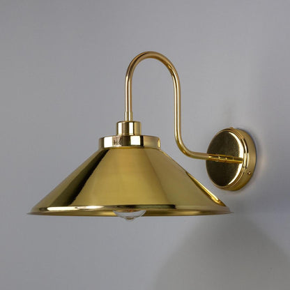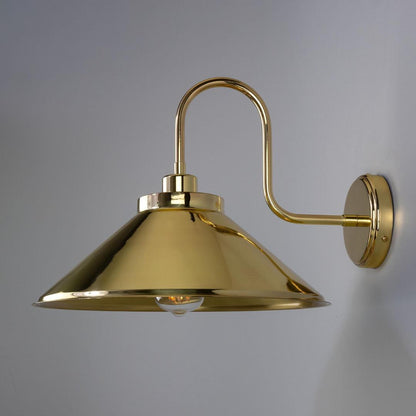 Inspired by the industrial aesthetic of the past, the Rio Wall Light features a sleek and curved brass swan neck arm that adds an element of sophistication to its simple conical shade. It's polished or satin brass finish gives it a timeless appeal, making it a perfect fit for both modern and traditional settings.