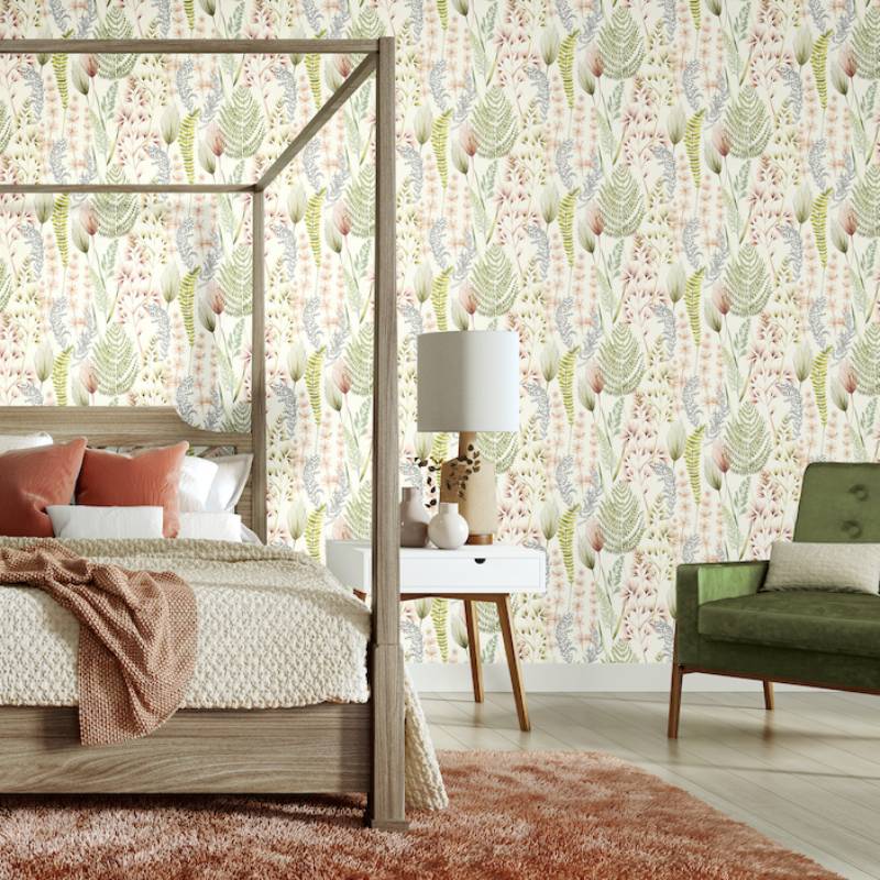 Bring some pretty floral style to your home with the beautiful Summer Ferns Wallpaper by Ohpopsi.