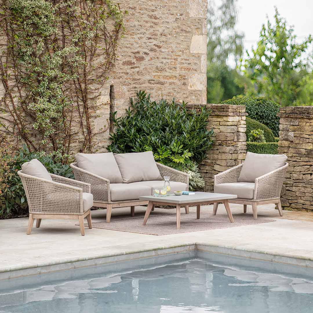 Crafted from durable and weatherproof acacia wood, this set is designed to withstand the elements while still exuding charm and sophistication. The Lynton 2 Seater Sofa provides ample seating space for you and a loved one to cosy up and enjoy the fresh air, while the two accompanying Lynton Armchairs offer additional seating options for friends and family.