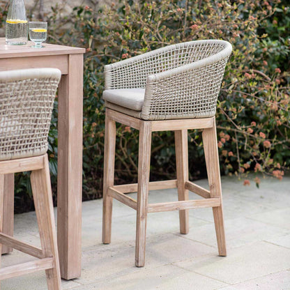 Imagine sitting back and enjoying the warm summer breeze, with a refreshing drink in hand, on our elegant Lynton Bar Stool. This set comes with two stools, perfect for sharing the experience with a friend or loved one. The soft grey seat pad and thick, plush back cushion provide optimal comfort, making it the perfect spot to relax and unwind.