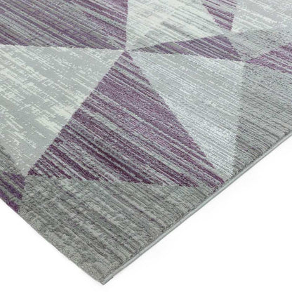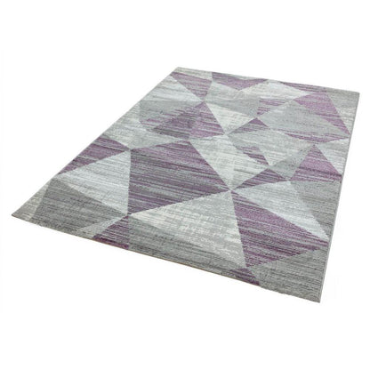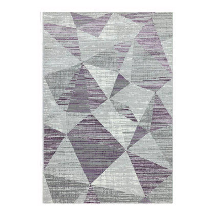 Eye catching silver accents and a high shine finish enrich the distinctive geometric print in shades stunning shades of grey and purple.