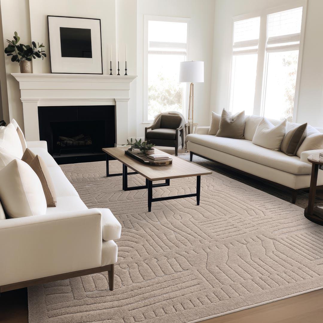 The Route Rug in Natural features an exquisite geometric design, this eye-catching rug effortlessly embodies modern sophistication. Its artful machine-carved 3D patterns elevate it to a whole new level of timeless elegance. Prepare to be mesmerised as light dances upon the intricate shapes, adding an extra layer of depth and allure to your space.