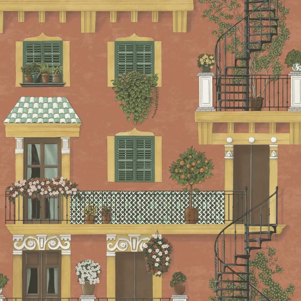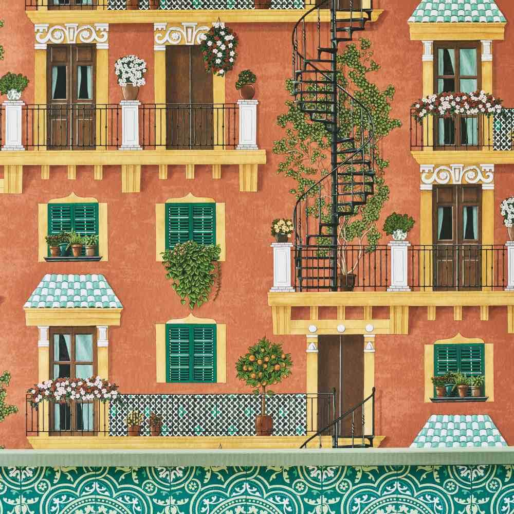 Vibrant Sevillian architecture is brought to life in this wonderful Alfaro Wallpaper from the Seville Collection by Cole & Son.