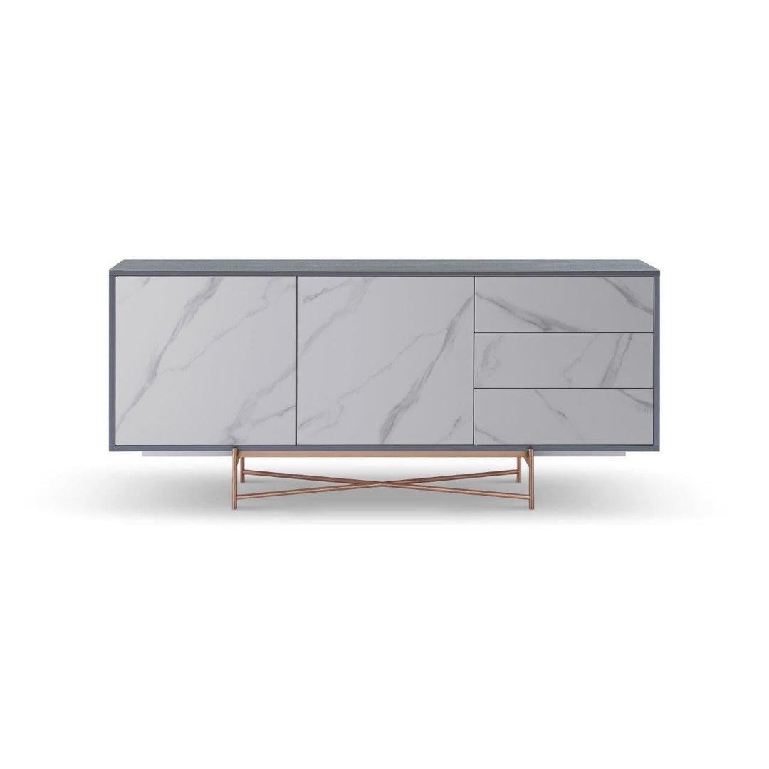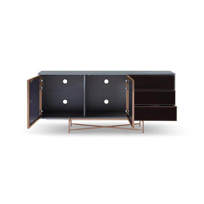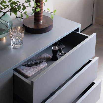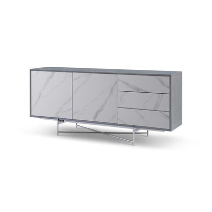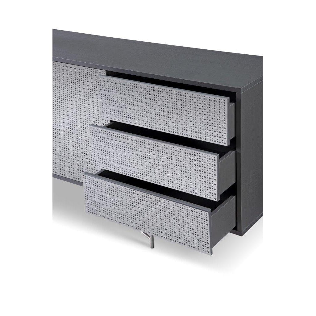 This stylish and sophisticated sideboard is a celebration of contemporary design furniture in the UK. With 2 large doors for storage and 3 ample drawers, it is the perfect buffet sideboard for the living or dining room.