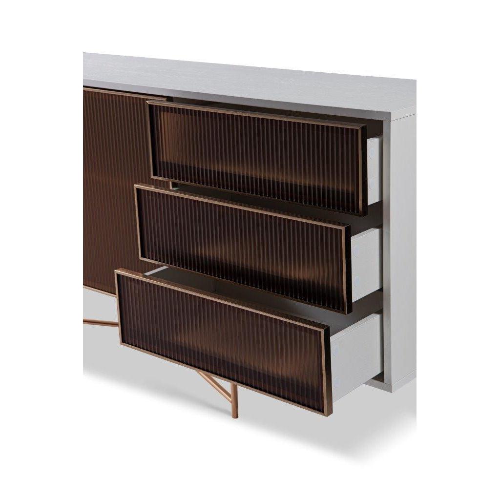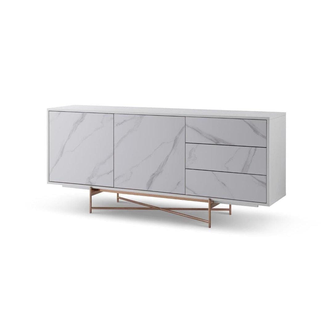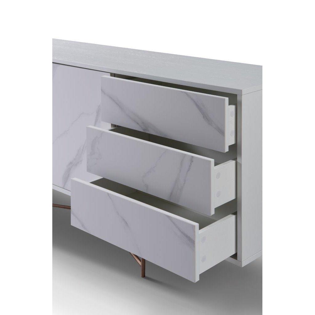 This stylish and sophisticated sideboard is a celebration of contemporary design furniture in the UK. With 2 large doors for storage and 3 ample drawers, it is the perfect buffet sideboard for the living or dining room.