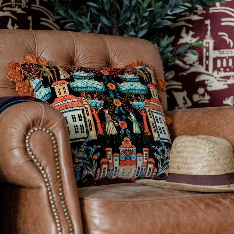 Madagascar Midnight Fringe Velvet Cushion - Avalana Design