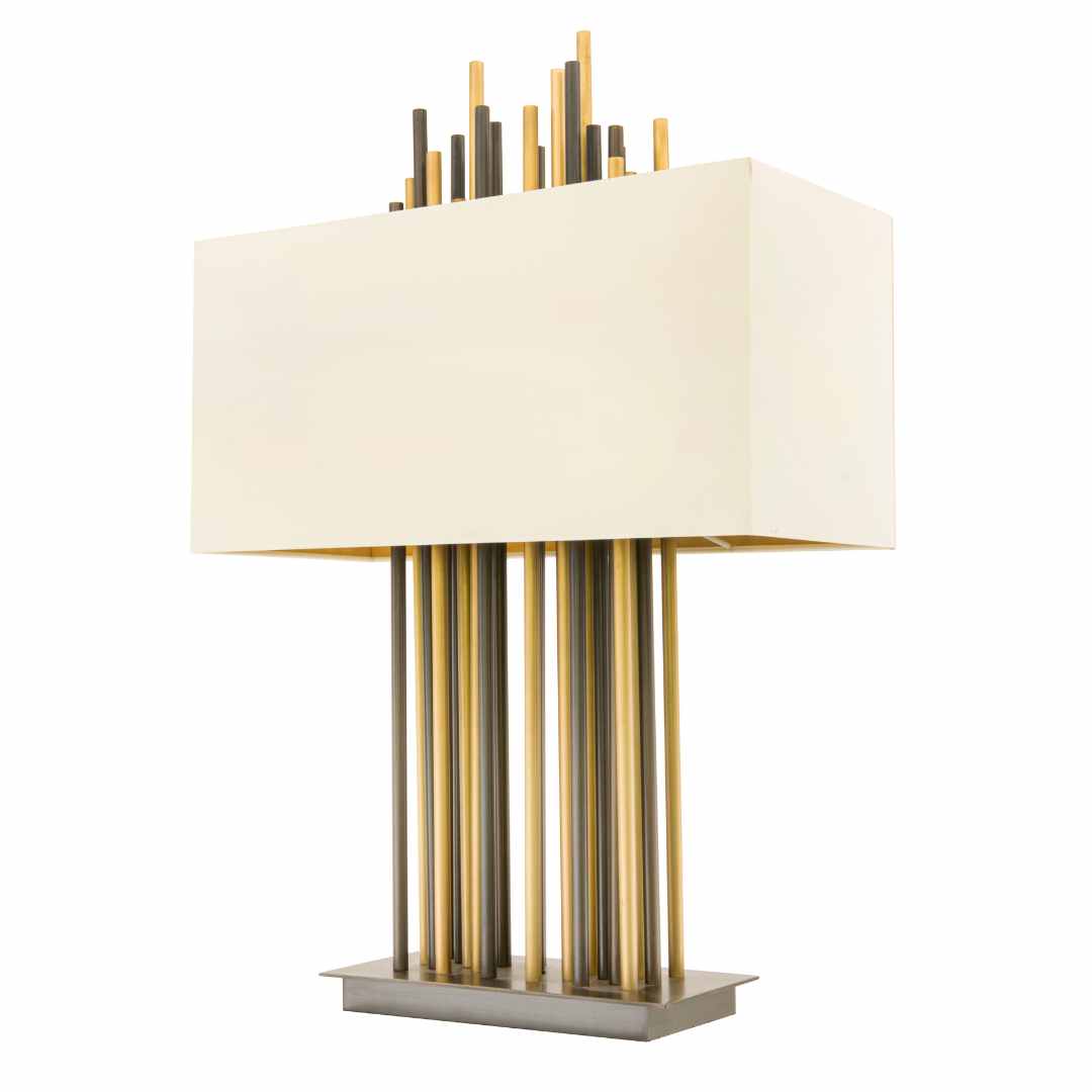 Beginning at the foundation, the Raviene Table Lamp boasts an architecturally striking base. Strong lines bring a crisp boldness to any décor while light and dark antique brass finish combinations add in warmth and sophistication.
