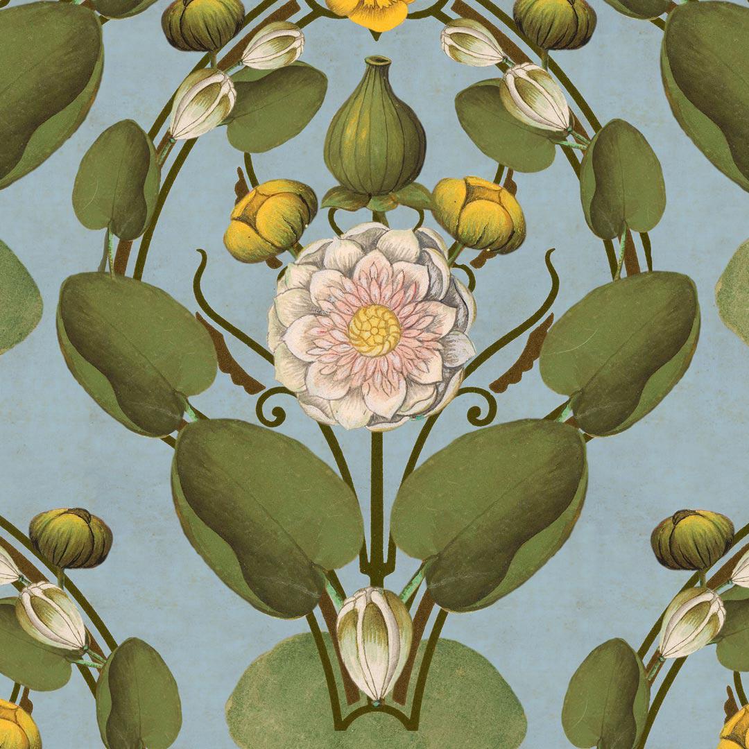 The gentle and calming colour palette of Light Pink and Powder Blue chosen for this wallpaper design creates a sense of serenity and peacefulness. Just like the waterlily itself, this wallpaper will bring a sense of tranquillity to any room it graces.