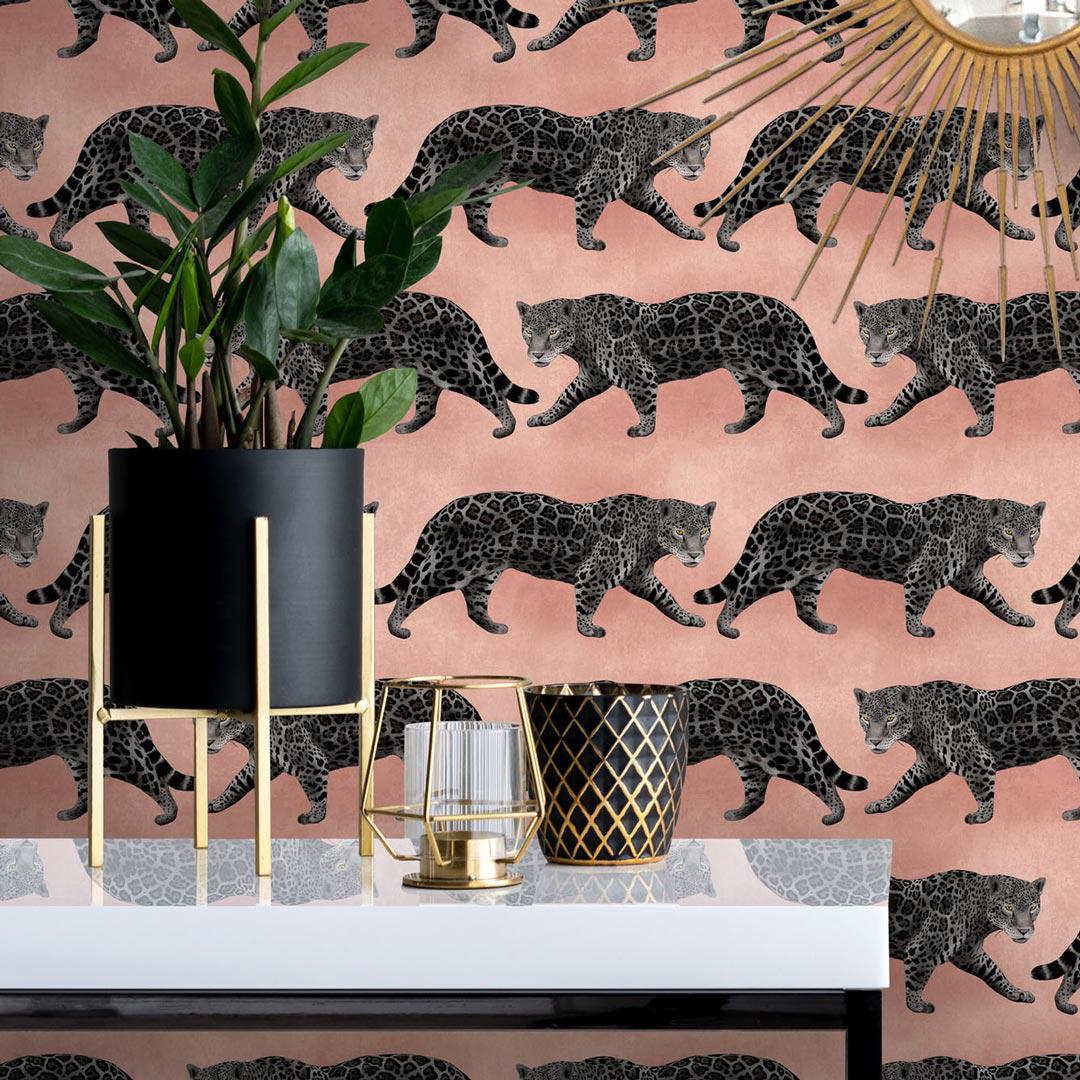 The Pink Pantheress Wallpaper is a sophisticated take on the jungle cat trend. This stunning design features a majestic jaguar against a blush pink background. The perfect choice for animal lovers or anyone who appreciates art, this wallpaper is sure to turn heads and create a talking point in any space.