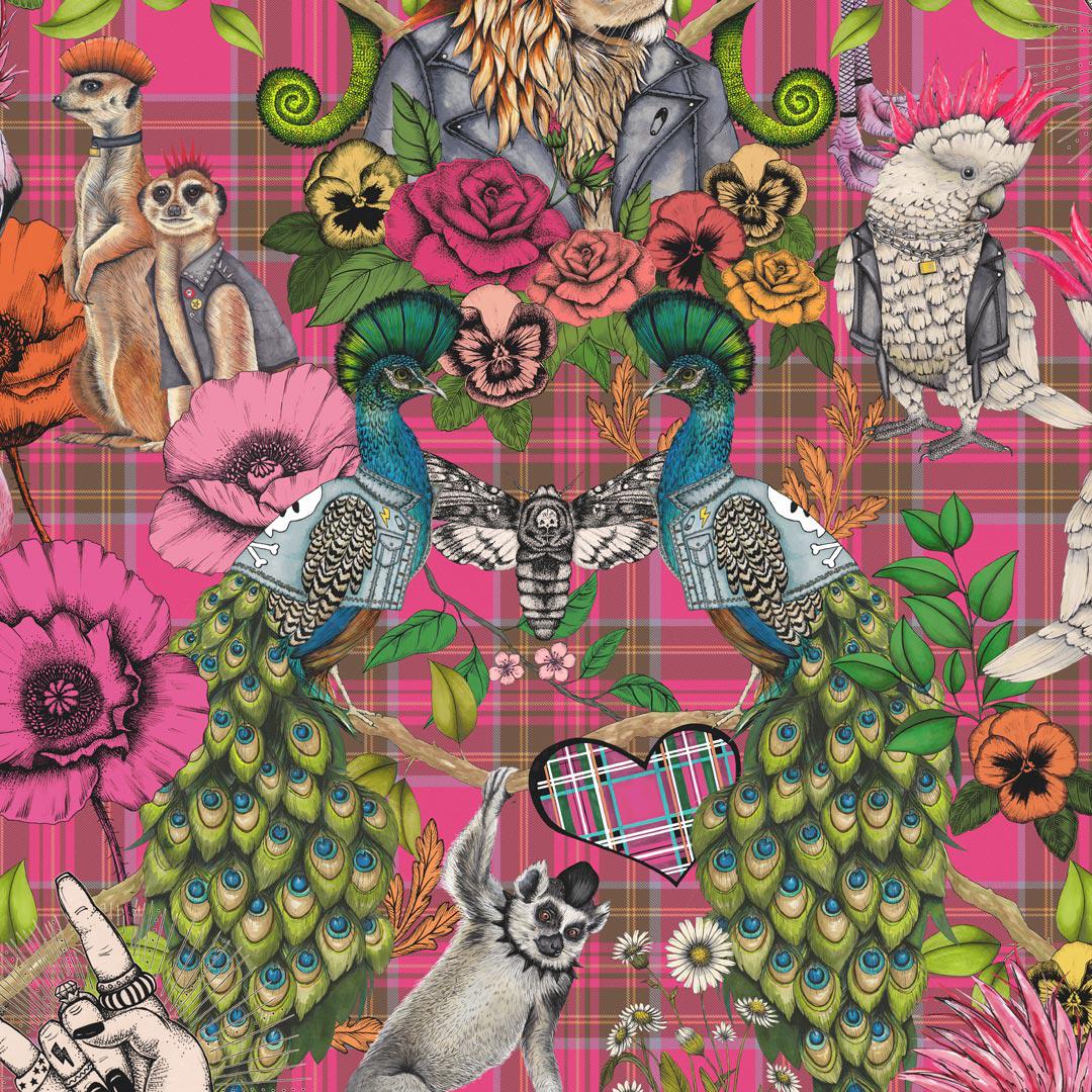 With a hot pink tartan background, Punk Rocks Wallpaper immediately demands attention. And as you delve deeper into the design, you’ll find an eclectic mix of creatures, each one adorned in punk-inspired fashion. Leather jackets, colourful mohawks, and edgy accessories - these animals embody the essence of punk attitude and style.