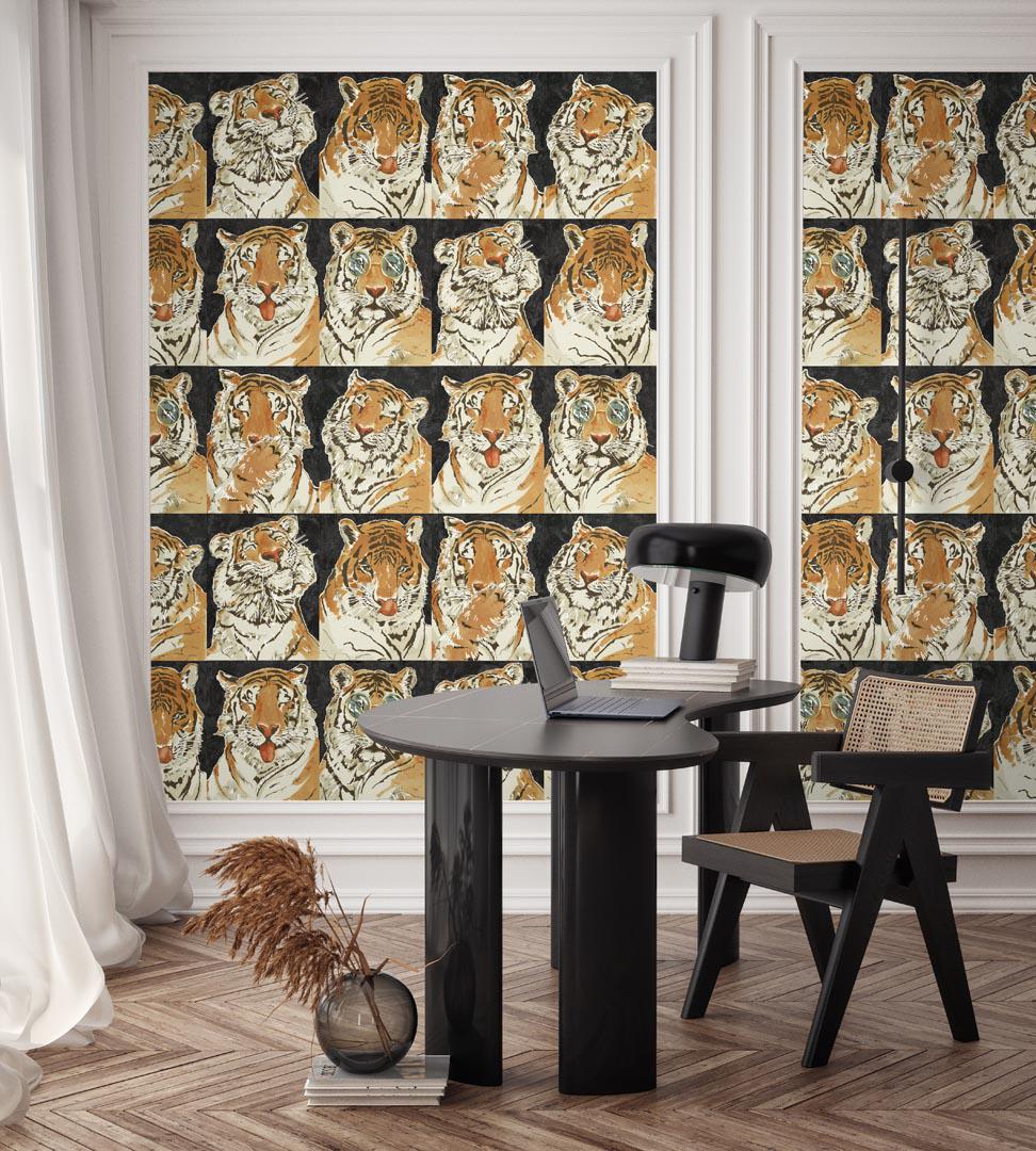 Inspired by the iconic pop art style of Andy Warhol, this animal wallpaper puts a fierce and playful spin on the classic Warhol aesthetic. In place of human faces, your walls will now feature the striking and majestic visage of a tiger, portrayed in four distinct and expressive gestures. Each tiger face is a statement of personality and attitude, showcasing the animal in a series of playful moods that will add life and character to your space.