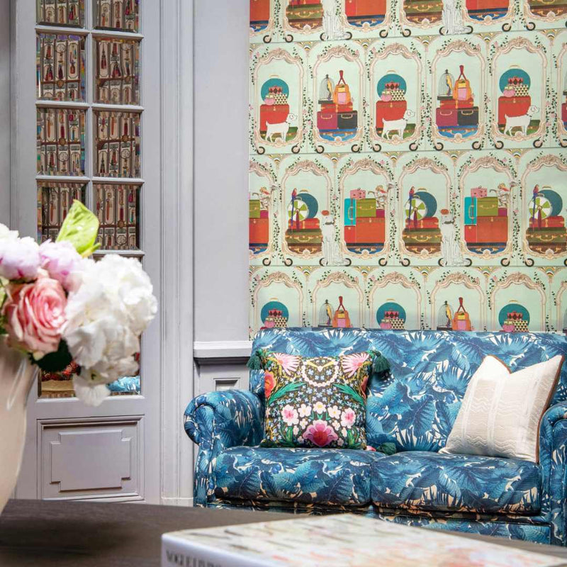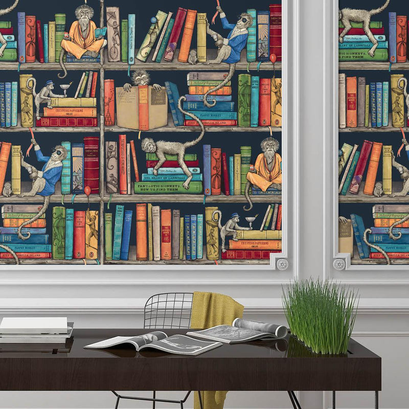 Monkey Library Wallpaper - Colourful Blue - Brand McKenzie