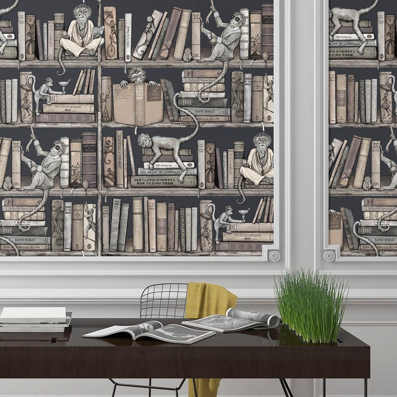 Monkey Library Wallpaper - Taupes - Brand McKenzie