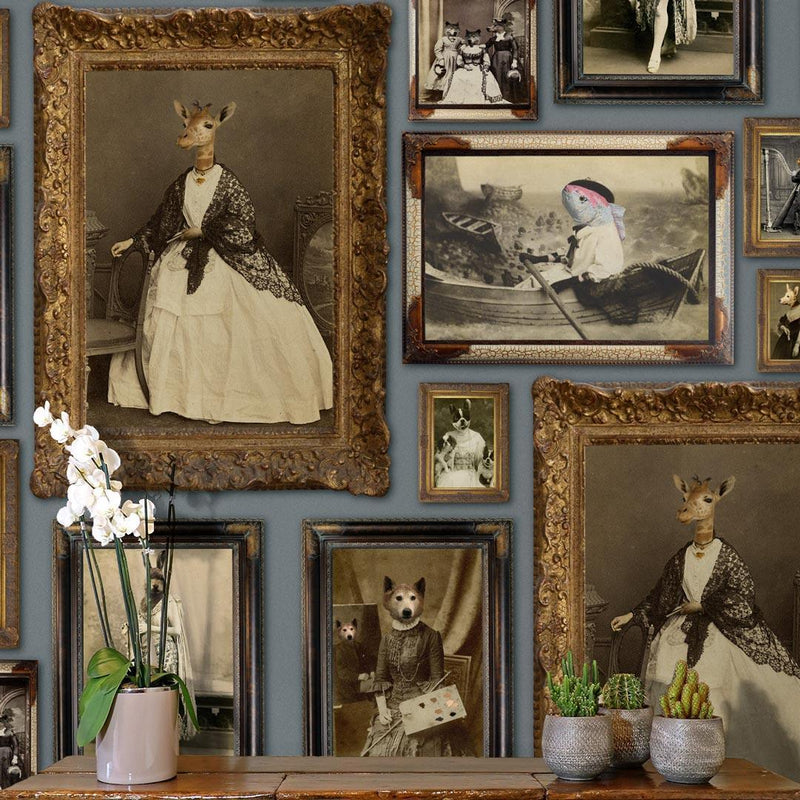The range of books, frames, and plates wallpapers seamlessly blends classic elegance with a touch of whimsy. The carefully arranged bookshelves, ornate frames, and delicate plates create a captivating visual narrative that sparks curiosity and imagination. This wallpaper transforms any room into a cosy haven of literary charm, evoking the sensation of being surrounded by cherished stories and cherished heirlooms. The intricate details and intricate layers of the design invite a sense of exploration, as if each element has its own tale to tell, making it a truly captivating and conversation-worthy choice for interior decor. Whether used in a cosy reading nook, a study, or a dining area, this collection of wallpaper adds a unique and timeless ambience that speaks to the beauty of storytelling and the art of collecting memories.