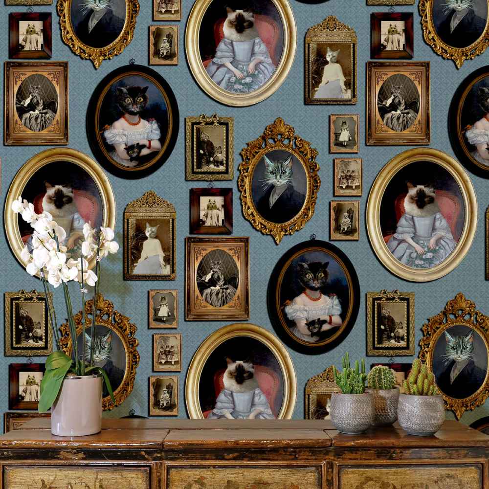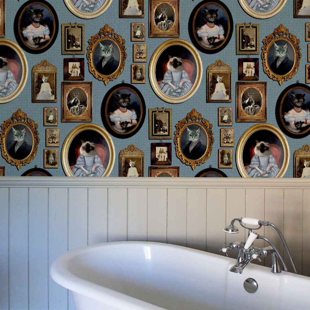 A Cavalcade of Cats Wallpaper is designed by Charlotte Cory for the Graduate Collection is the purr-fect choice for cat lovers! This wonderfully quirky wallpaper in chic blue colourway will instantly change the whole feel of the space and the mood of the people in that space. It makes a great conversation piece for your home.