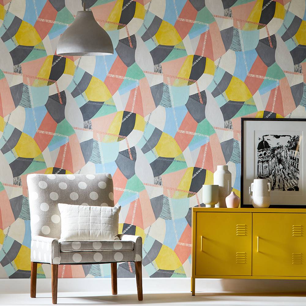 This patchwork of textured colour creates a wallpaper full of movement. Alive with personality, its sketched zigzag element runs back and forth, oozing vibrancy and charisma with a nod to mid century style. A real statement piece, this standout design will certainly create the wow factor.