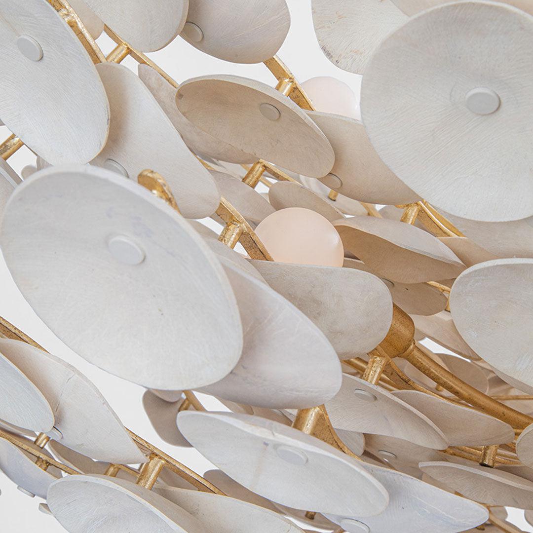Handcrafted with precision and attention to detail, this chandelier is made to impress and last. The combination of delicately placed coco shells and a Vintage Gold Leaf frame creates a brilliant and luxurious ensemble.