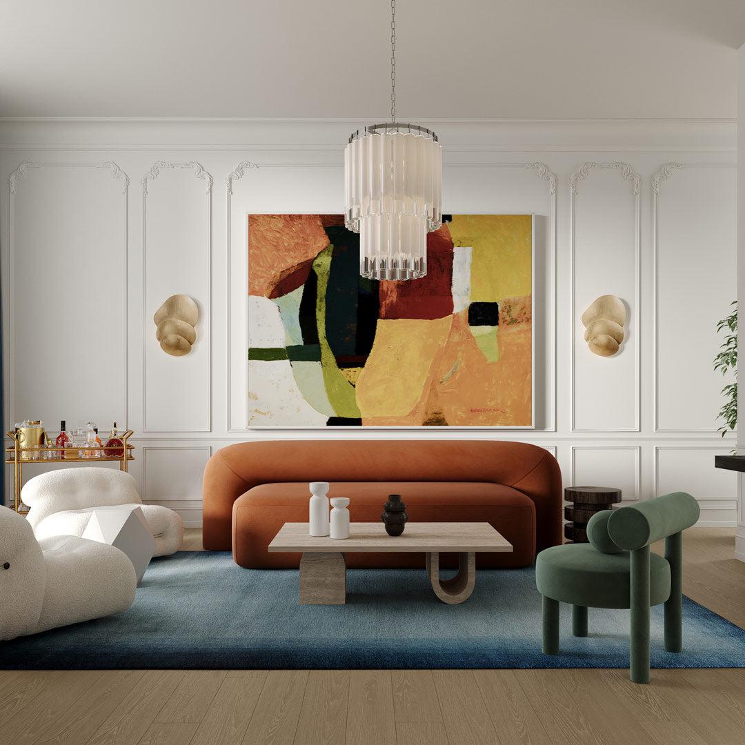 Crafted with precision and artistry, each piece of this stunning light fixture features a series of layered, rounded forms that are delicately clustered around a central light source. As the light shines through these intricate forms, it creates a captivating play of shadows and adds a soft, alluring glow to the surrounding area. Not only does it serve as a functional light source, but it also doubles as a stunning piece of modern art.