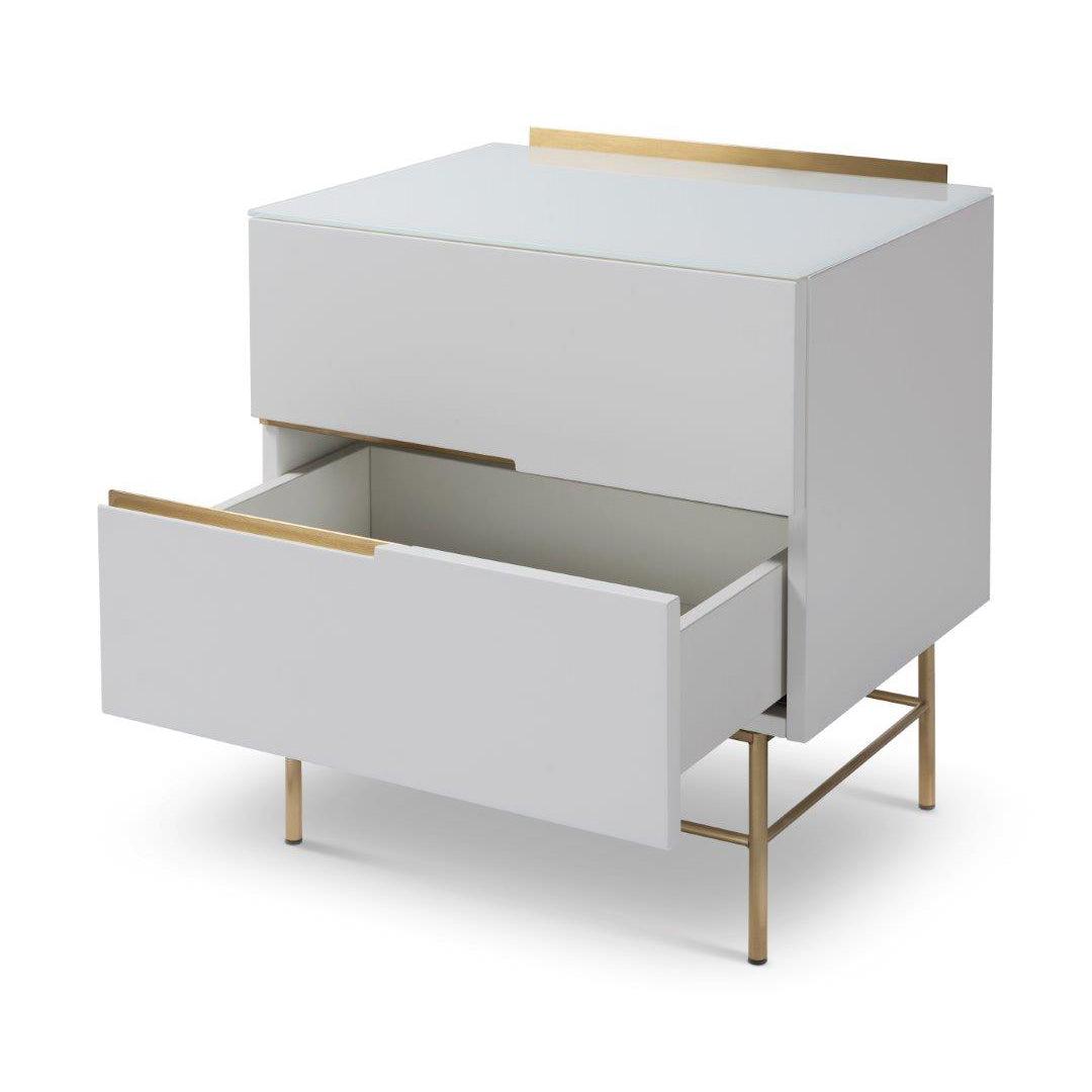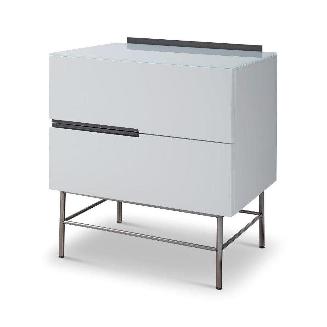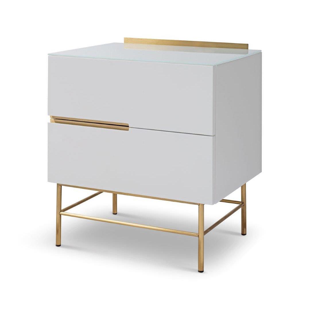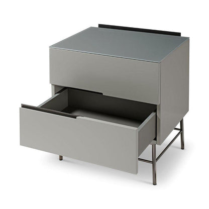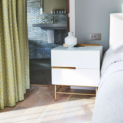 The Alberto 2 Drawer Narrow Chest is modern and contemporary bedroom storage table, designed in the UK to add style to your bedroom whilst still providing a storage solution. With 2 large drawers for keeping items secure, this bedside does not skimp on space or style, with intricate metal details providing an extra touch of elegance and sophistication. A choice of trendy brass or sleek dark chrome frame and detail, and 2 colour ways for the tops, you can choose the perfect match to complete your designer bedroom set.