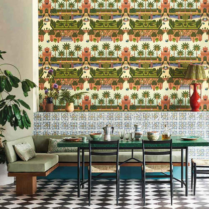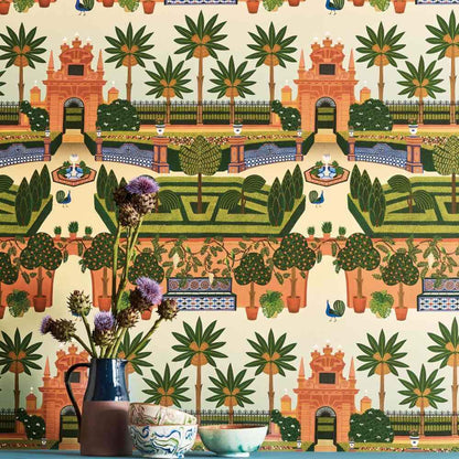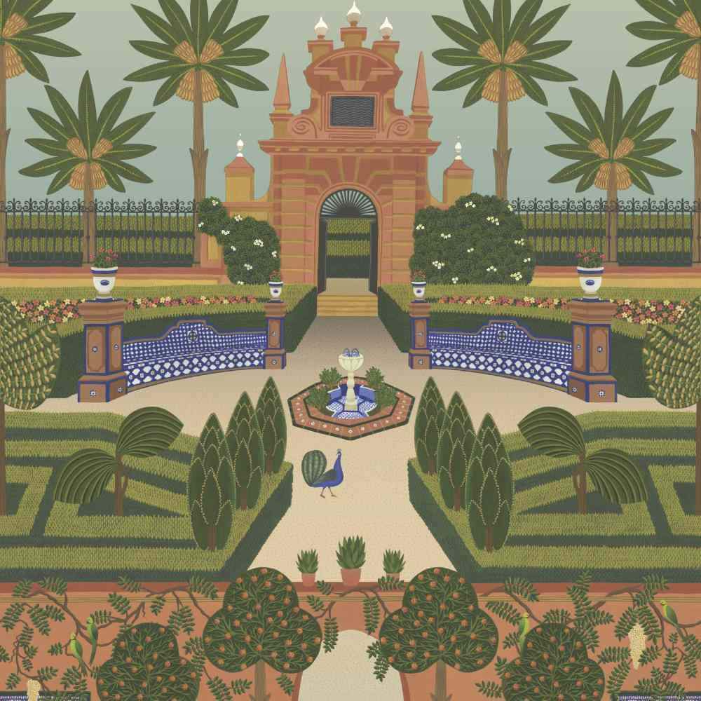 The Real Alcázar is an architectural icon of the city and now a UNESCO World Heritage Site. The Cole & Son design studio were so taken with is architecture and ornamentation that they were inspired to create this fantastical interpretation of the fortress palace’s gardens. It is a unique artwork piece presented in a classic Terracotta & Spring Green Multi colour palette.