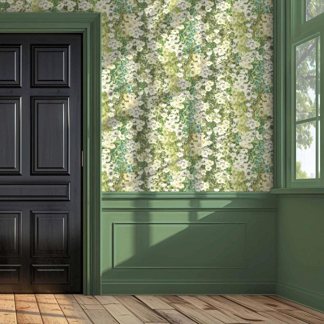Welcome to the world of Alcea Wallpaper in Green With Envy. If you're ready to upgrade your walls and awaken your senses, then look no further. This green floral wallpaper will leave you mesmerized.