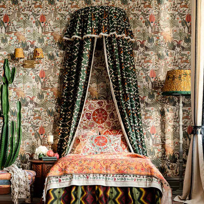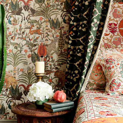 The majestic wildlife depicted brings out the beauty of nature like never before. You'll be drawn in by the softness of the colors and the detail within each element, allowing you to take a mental journey through traditional architecture plated amongst calm wildlife behavior—all without having to leave your home! Bring a unique atmosphere to your home with Algerian Tale Wallpaper from Mind The Gap.