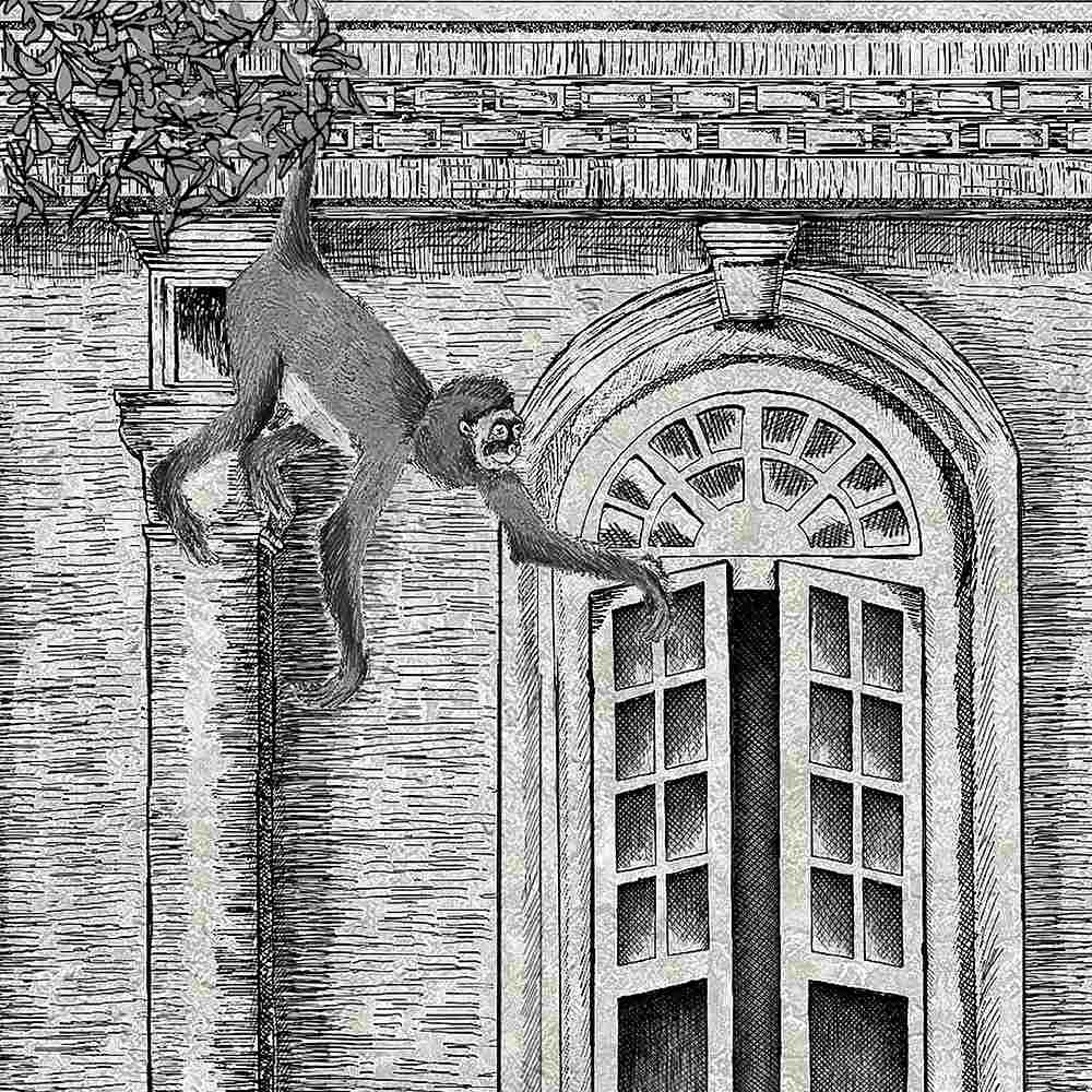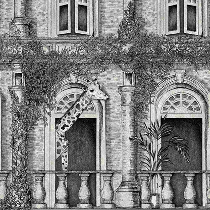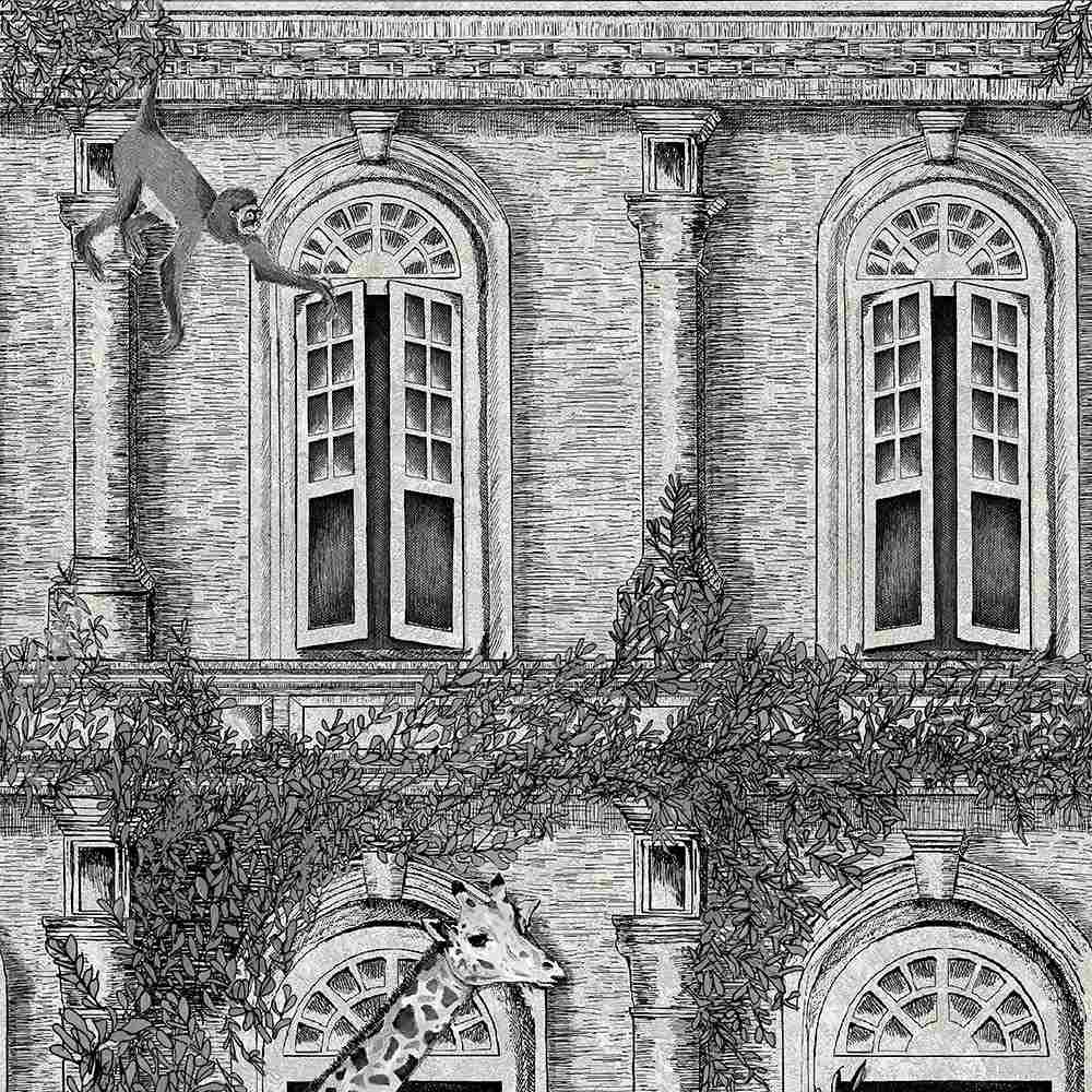Animal Architecture is an extraordinary hand sketched design with amazingly intricate architectural detail on the building where cheeky monkeys and elegant giraffes catch a view to the world. This lovely soft grey colourway is sure to work beautifully in a chic monochrome interior scheme.