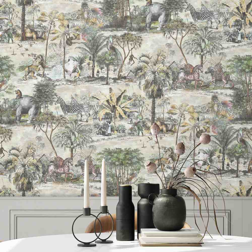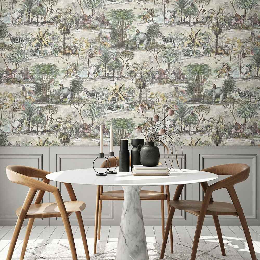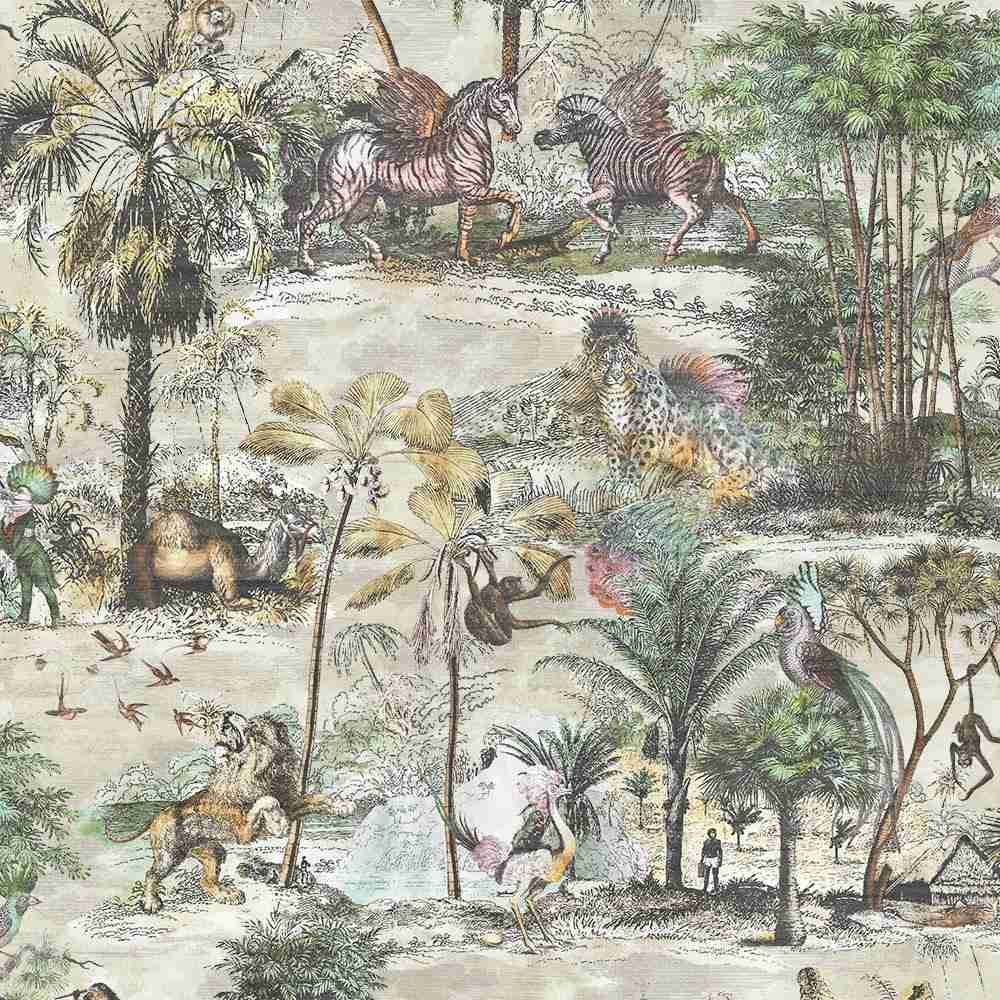This wonderful Animal Islands wallcovering in fresh bamboo green colourway is a meticulously hand sketched design with intricate details which brings this wonderful animal island to life.