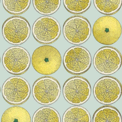 Arance wallpaper collection consists of Blood Orange, Orange, and Lemon on strikingly contrasting grounds of chalky Seafoam and Stone, as well as the sumptuous Ink.