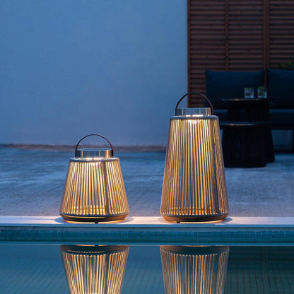 Introduce a touch of elegance to your outdoor space with the Maze Athena Solar Light, this outdoor solar-powered lantern is an exquisite and functional statement piece. Designed with a durable stainless-steel framework and adorned with intricate teak and polyester fibre rope detailing, this solar-powered lamp is suitable for all weather conditions and adds a touch of sophistication to your outdoor decor.