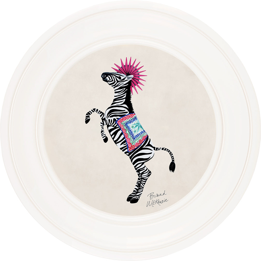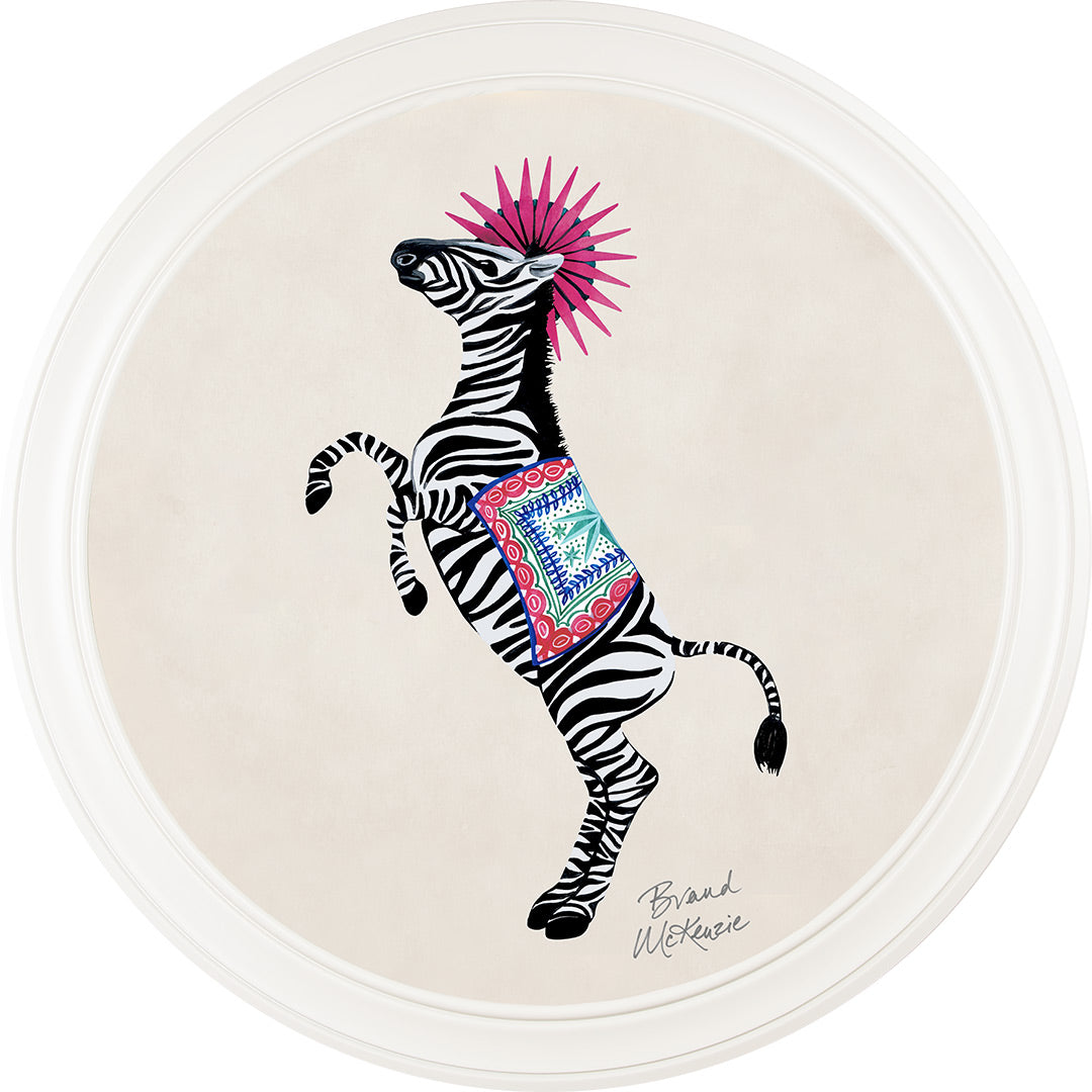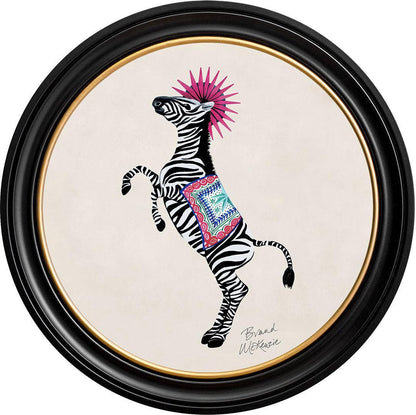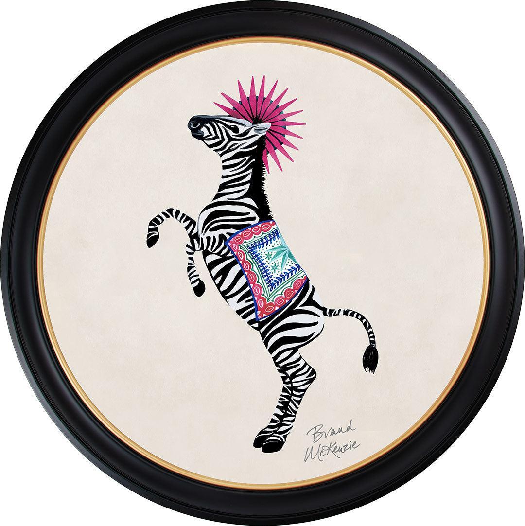 Add a dose of bold individuality to your décor with the "Balancing Act - Kiki" framed art print by Brand McKenzie. This captivating artwork features Kiki, a zebra with a punk edge and an adventurous soul. Her mohawk and story-laden saddle speak of a spirit that breaks rules and challenges expectations. If you're looking for art that embodies untamed beauty and fearless confidence, Kiki is the perfect addition to your space.