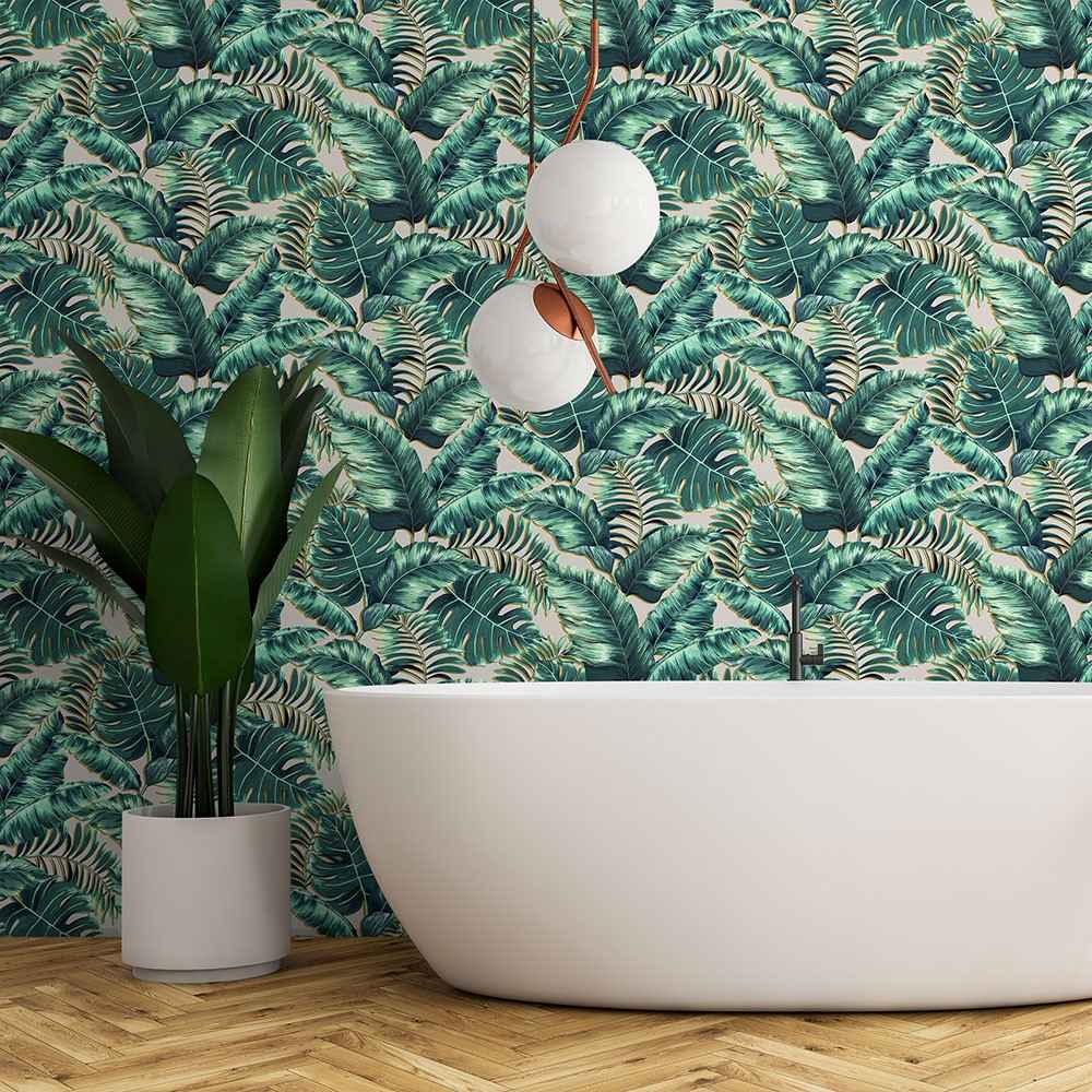 Bring a sense of tropical paradise to your home with the fabulous Banana Leaves Wallpaper by Brand McKenzie. The green hand drawn leaves stand out beautifully from the dedicate blush pink background.