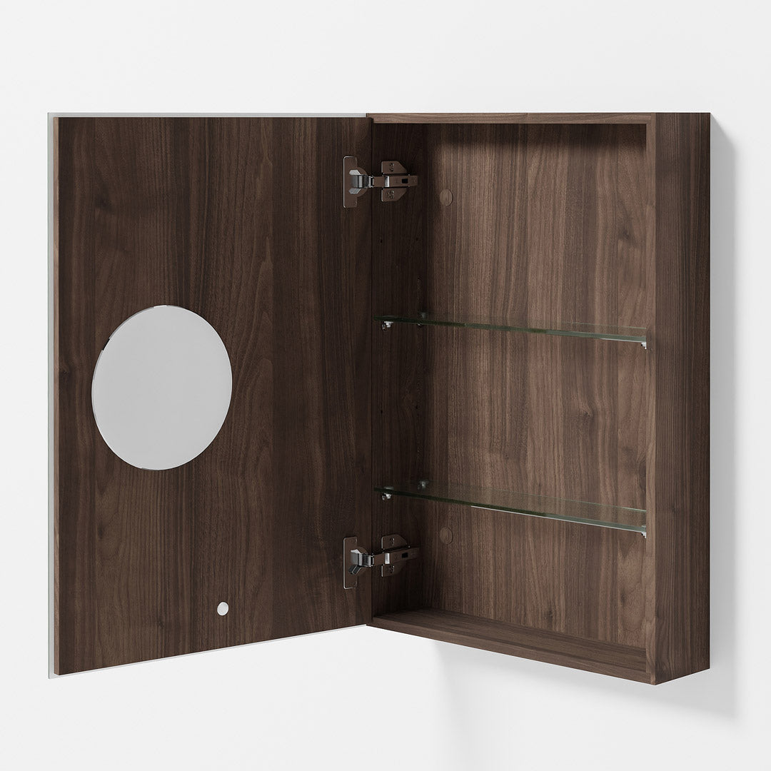 The Bathroom Cabinet 600 Slimfit in Walnut is a sleek and contemporary single door mirror cabinet. Crafted from sustainably harvested American walnut, this wall cabinet boasts a rich colour and beautiful grain pattern that will elevate the look of any bathroom.