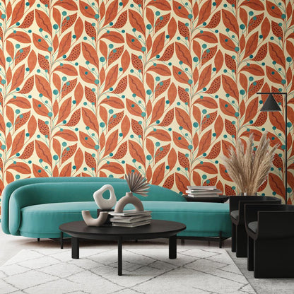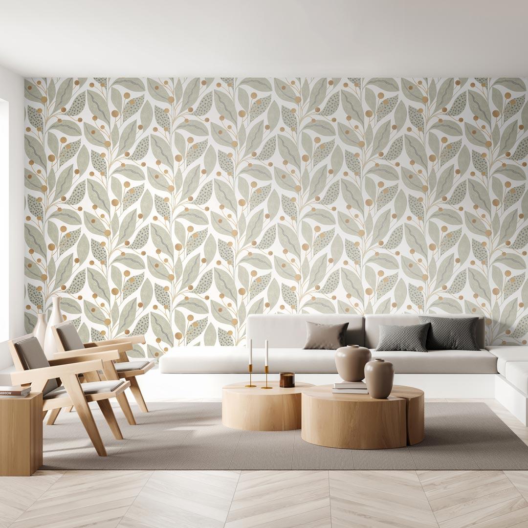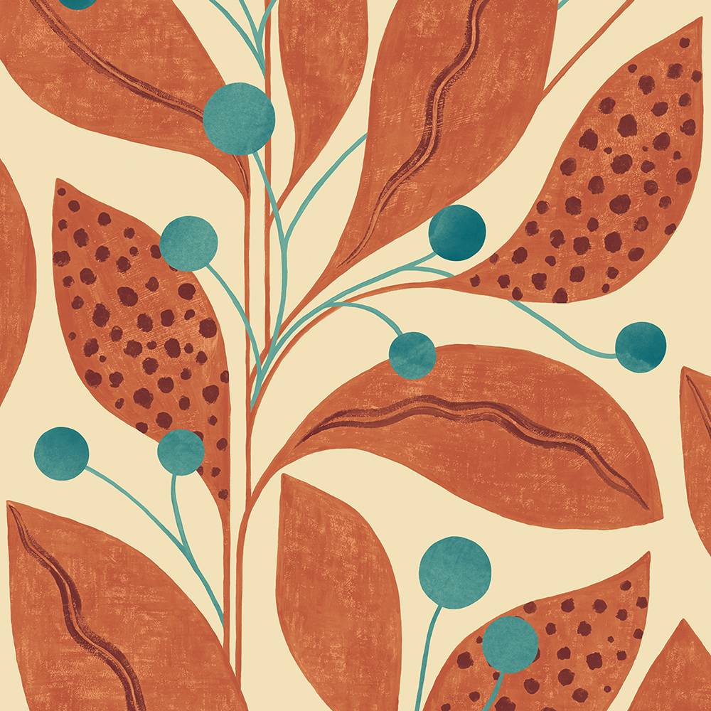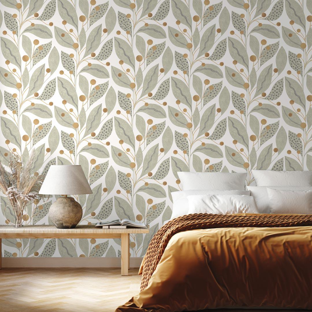 Bring some modern botanical style to your home with the beautiful Berry Dot Wallpaper by Ohpopsi.