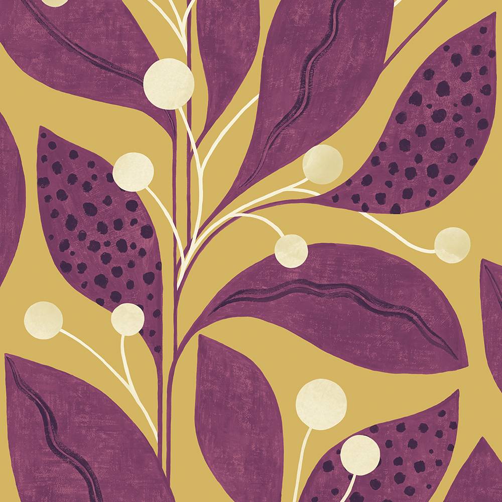 A vibrant wallpaper of repeating stylised leaves, Berry Dot’s branches reach skyward to form a contemporary vertical stripe. Simply drawn and with a painterly texture running throughout, meandering berries add a hint of colour and flow to the design.