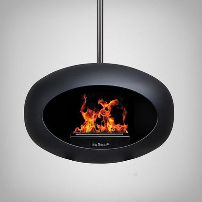 No chimney, flue or unsightly cables are required. This easy to fit hanging fire is great for a living room, kitchen, orangery, dining room, restaurant, bar and location where warmth, distinction and elegance are desired. The black finish enhances and augments the glow of the flame and quickly radiates an efficient heat to create warmth and comfort removing the chill from cold living areas at home.