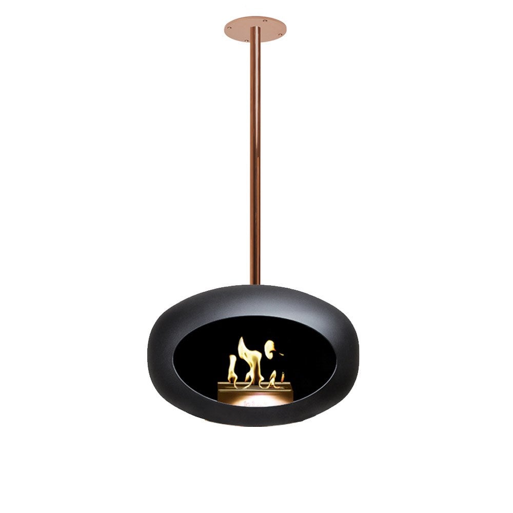 Bring a chic Scandinavian feel to your home with the elegant Rose Gold edition of the Black Sky Bioethanol Fire by Le Feu. Suspended from the ceiling by a Rose Gold ceiling plate and pole, this bioethanol fireplace appears to float in the air as it radiates a soft warmth, contributing to a cozy and relaxed atmosphere in your home.