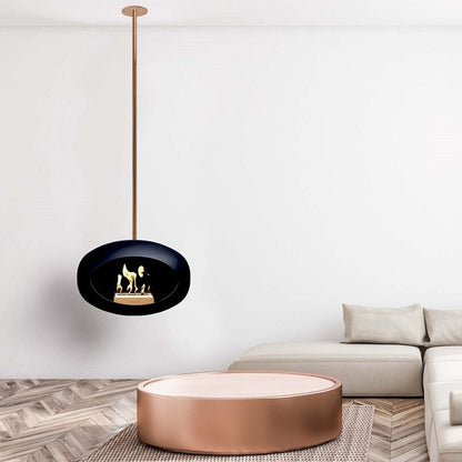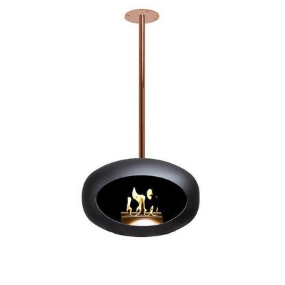 Bring a chic Scandinavian feel to your home with the elegant Rose Gold edition of the Black Sky Bioethanol Fire by Le Feu. Suspended from the ceiling by a Rose Gold ceiling plate and pole, this bioethanol fireplace appears to float in the air as it radiates a soft warmth, contributing to a cozy and relaxed atmosphere in your home.