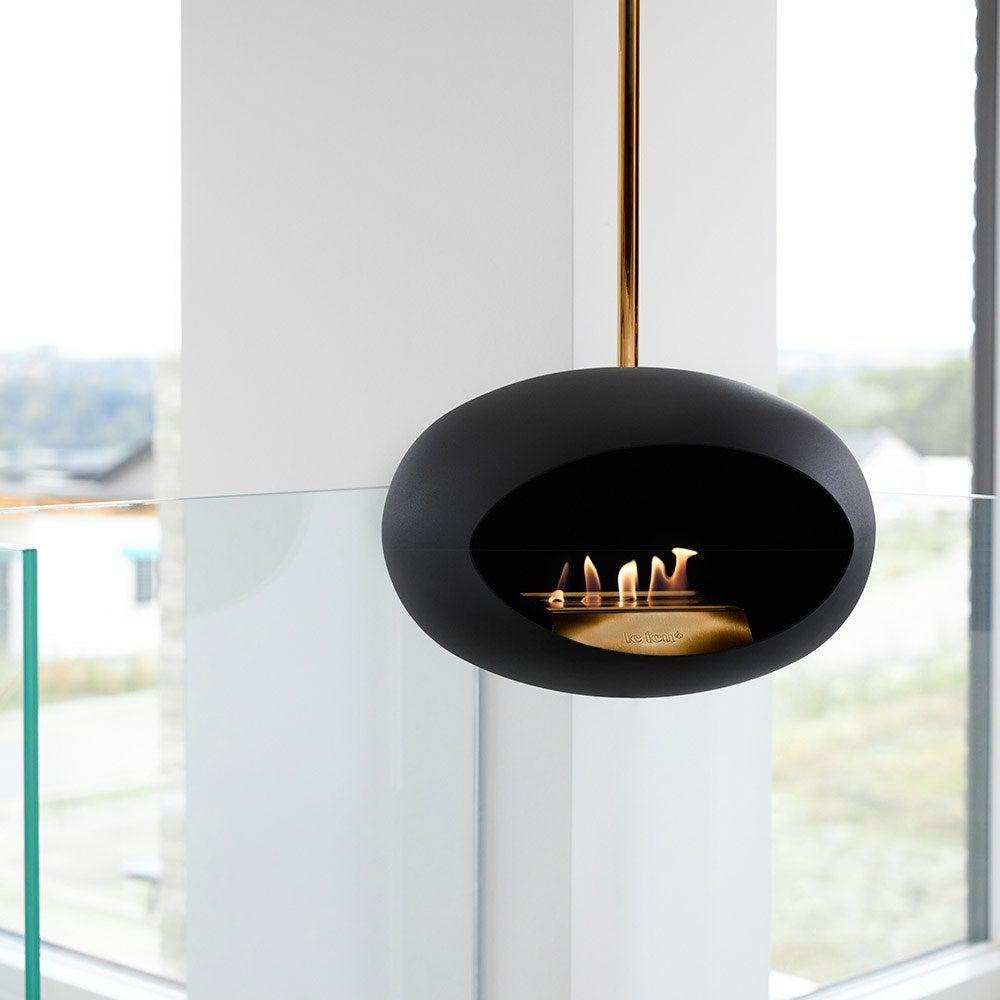 No chimney, flue or unsightly cables are required. This easy to fit hanging fire is great for a living room, kitchen, Orangery, dining room, restaurant, bar and location where warmth, distinction and elegance is desired. The matt black finish enhances and augments the glow of the flame and quickly radiates an efficient heat to create warmth and comfort removing the chill from cold living areas at home.