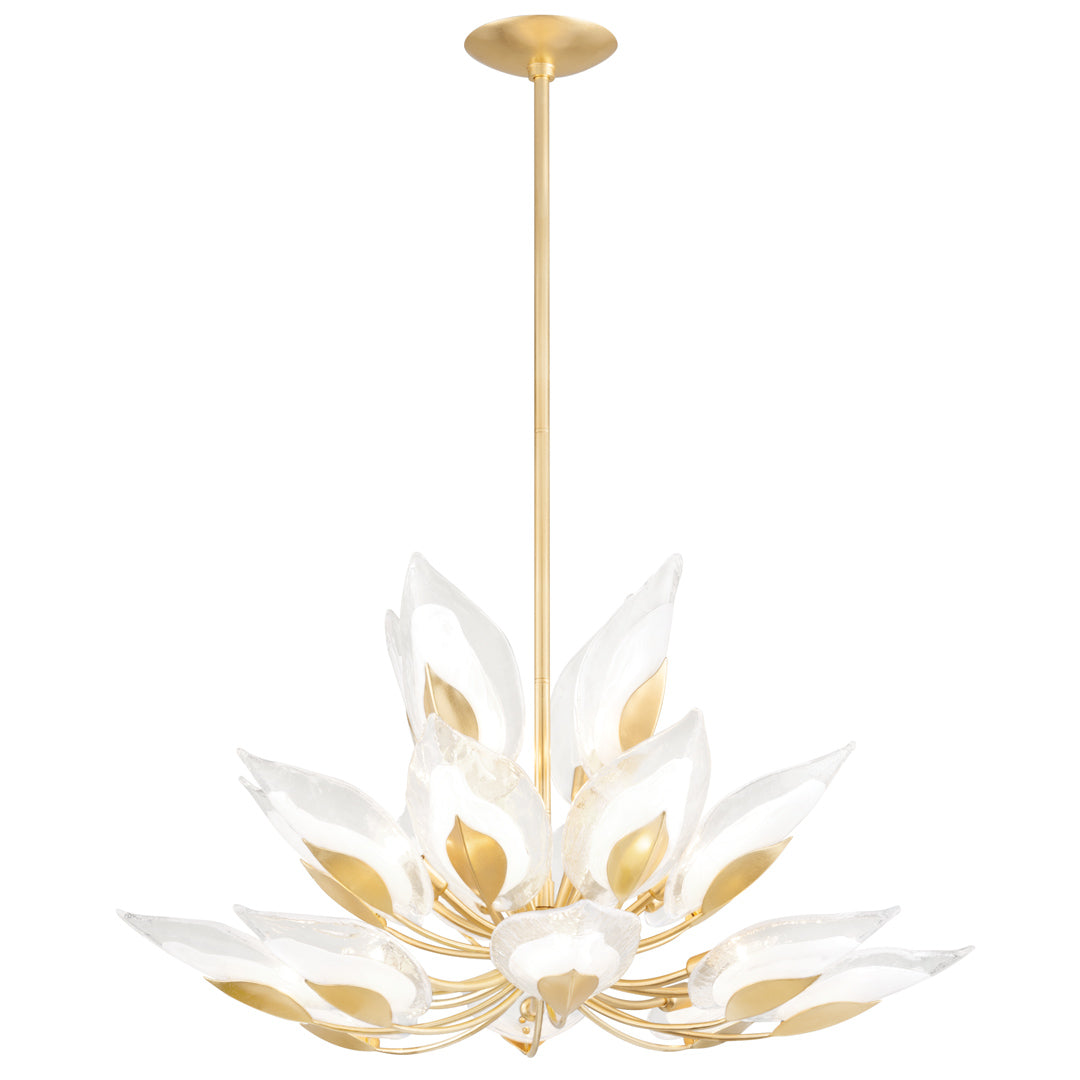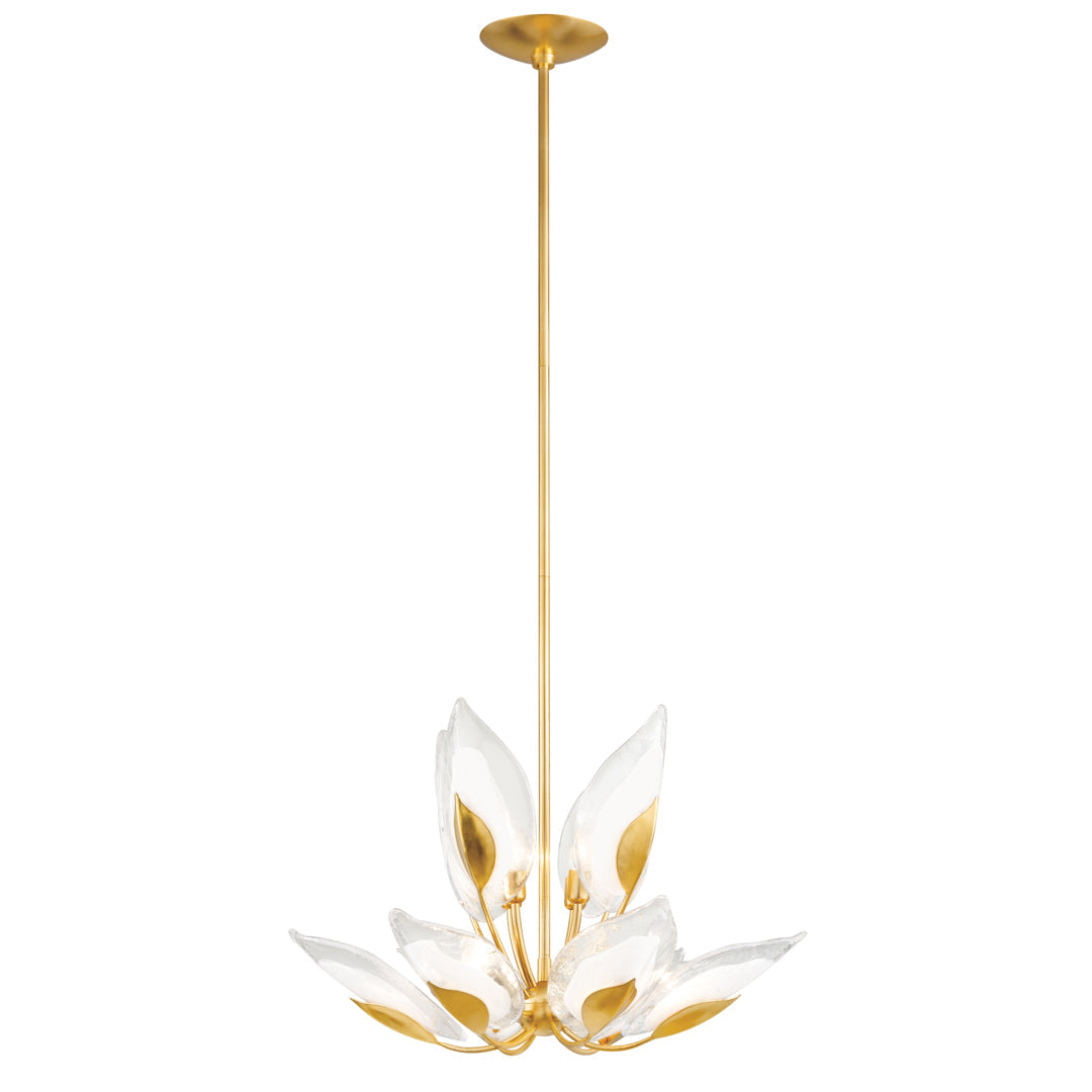Introducing the breathtaking Blossom Gold Leaf Chandelier by Hudson Valley Lighting! This luxury chandelier is a testament to the impeccable artistry and craftsmanship that defines the brand. Handcrafted with meticulous attention to detail, each shade of this chandelier is formed and cut from artisanal Piastra glass, making it a true work of art.