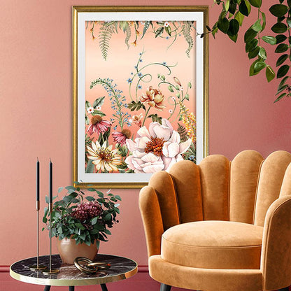 The romantic blush ombre background forms the perfect canvas for the delightful blooms that meander downwards, giving the artwork its unique charm and character. Whether you're adding it to your own personal wall art collection or gifting it to someone special, this art print is guaranteed to make a big impact.