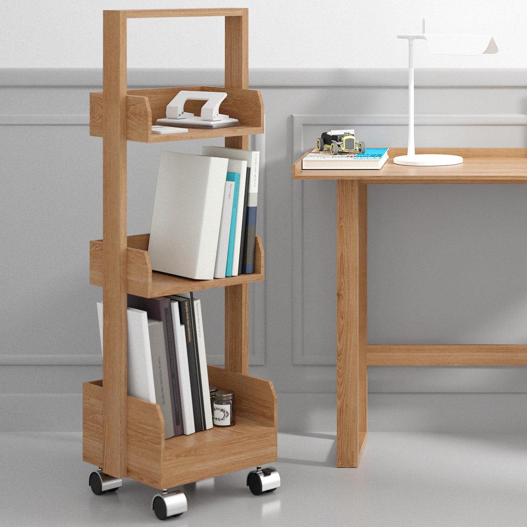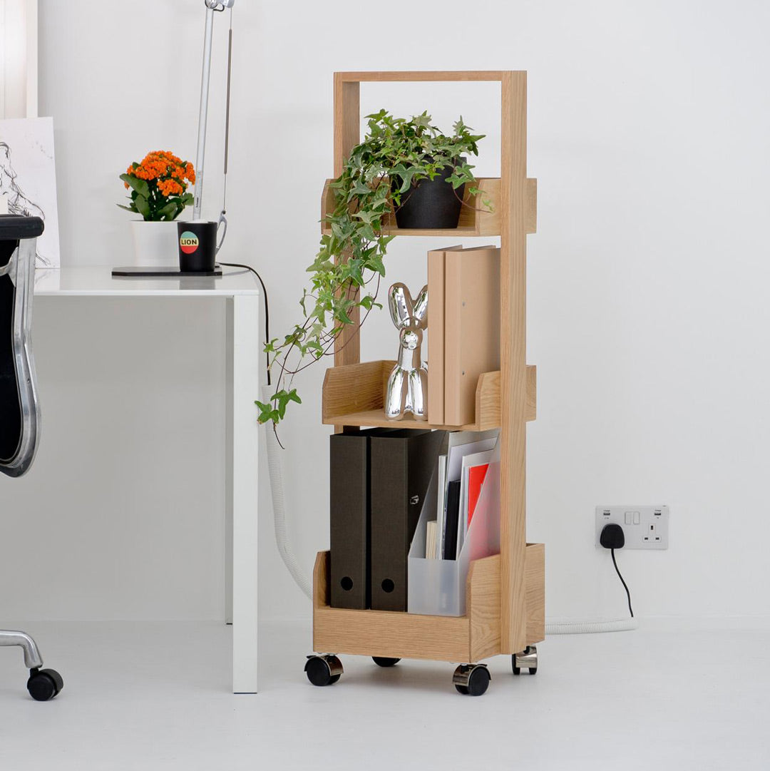 Introducing the Bookie Roller Shelf in Natural Oak! Say hello to the ultimate workspace organiser and display unit that will revolutionize your productivity and style.