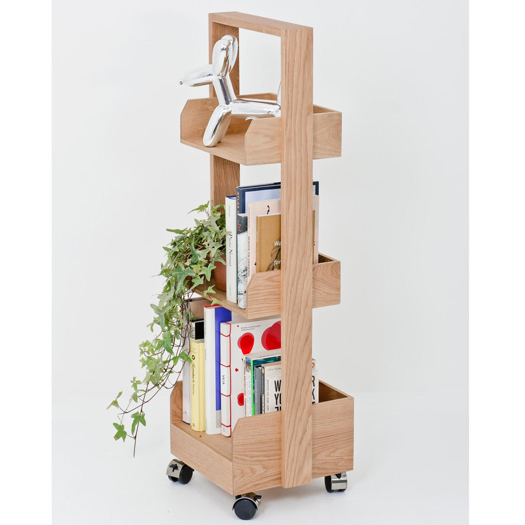 Whether you have an open plan space, an alcove, or simply a blank wall, the Bookie Roller Shelf adapts to your needs. No complicated assembly is required!