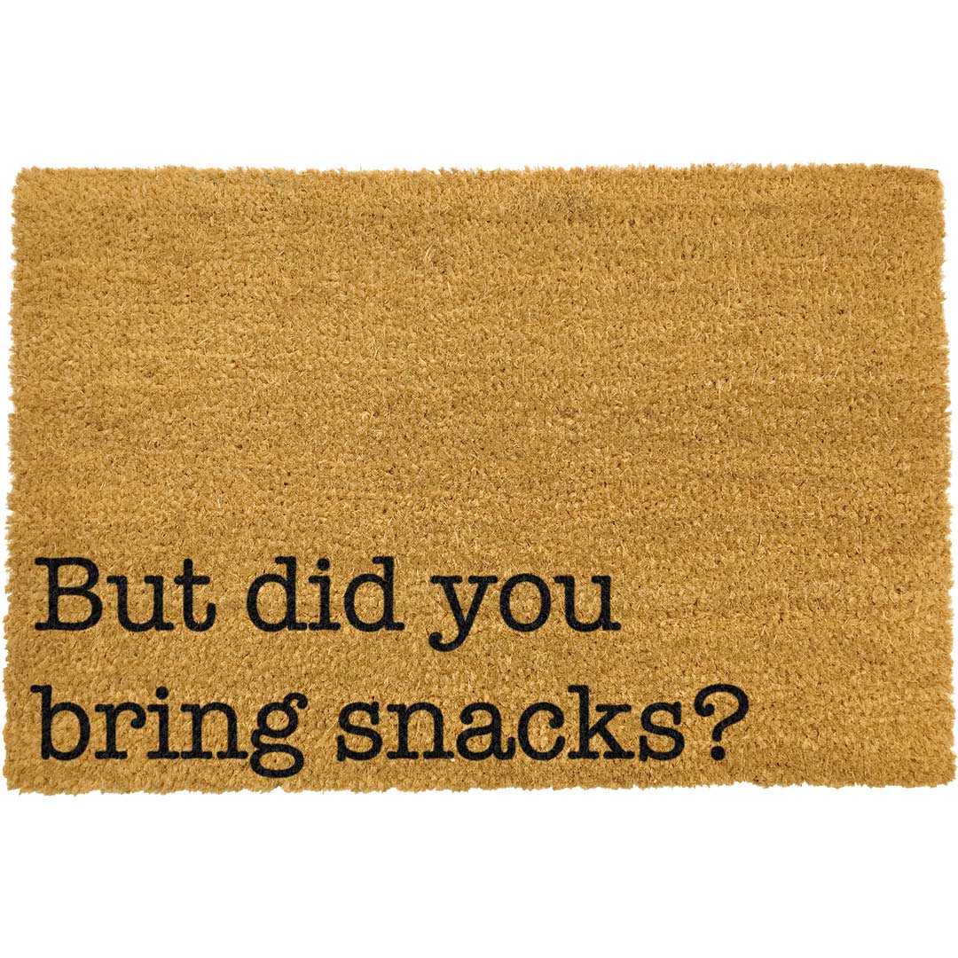 Welcome family, friends, and visitors to your home with this But Did You Bring Snacks Doormat! Get creative with funny typography that brings a smile to everyone's face. This adorable doormat is the perfect subtle greeting for all those visiting your home. No matter what the occasion, you can be sure everyone will always know where they stand - just have snacks ready and they are sure to come through the door!