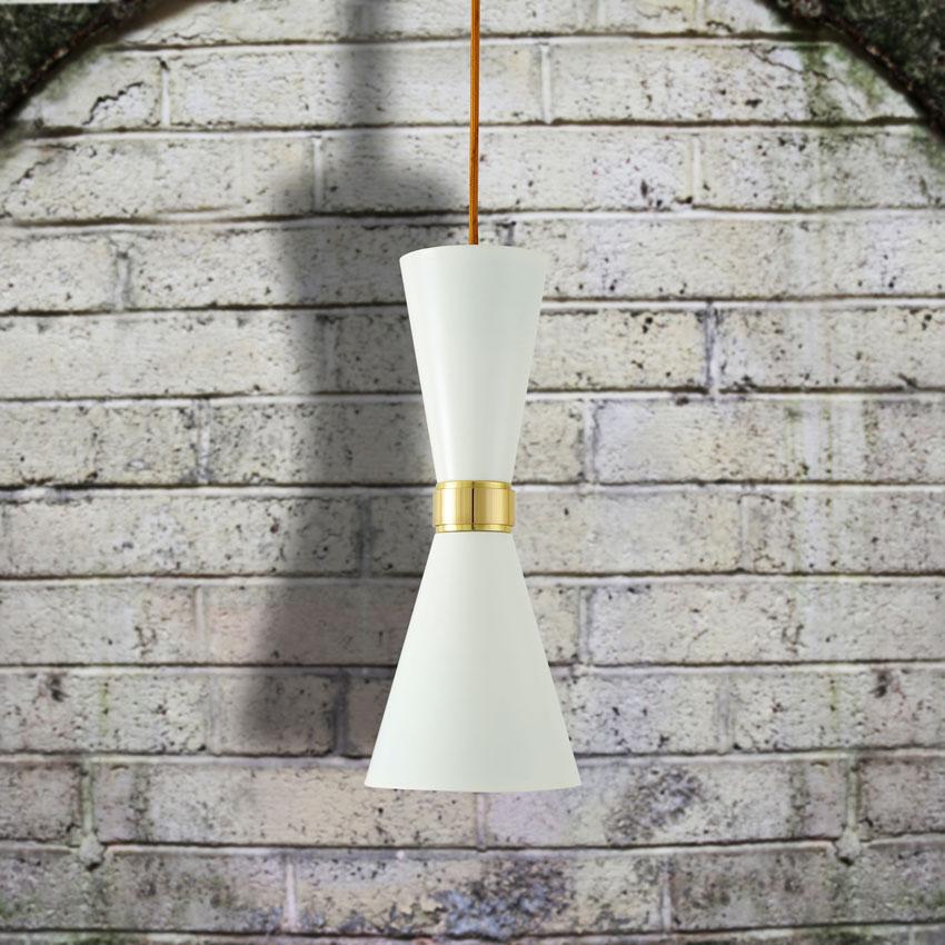 With a sleek and slim profile, the Cairo Contemporary Pendant Light in Powder Coated White & Polished Brass adds a touch of ambient illumination and industrial chic to your home. Designed by Mullan Lighting, the conical design of this contemporary pendant lamp make it a valuable asset over a kitchen island or office lighting.