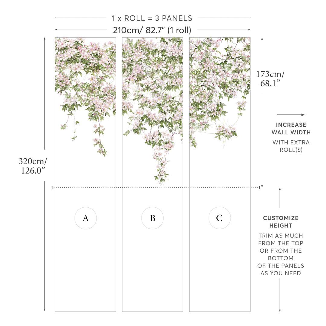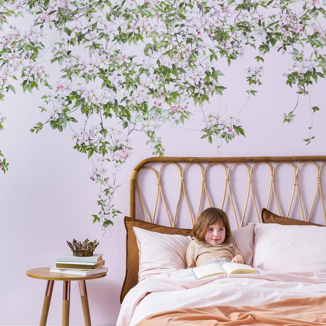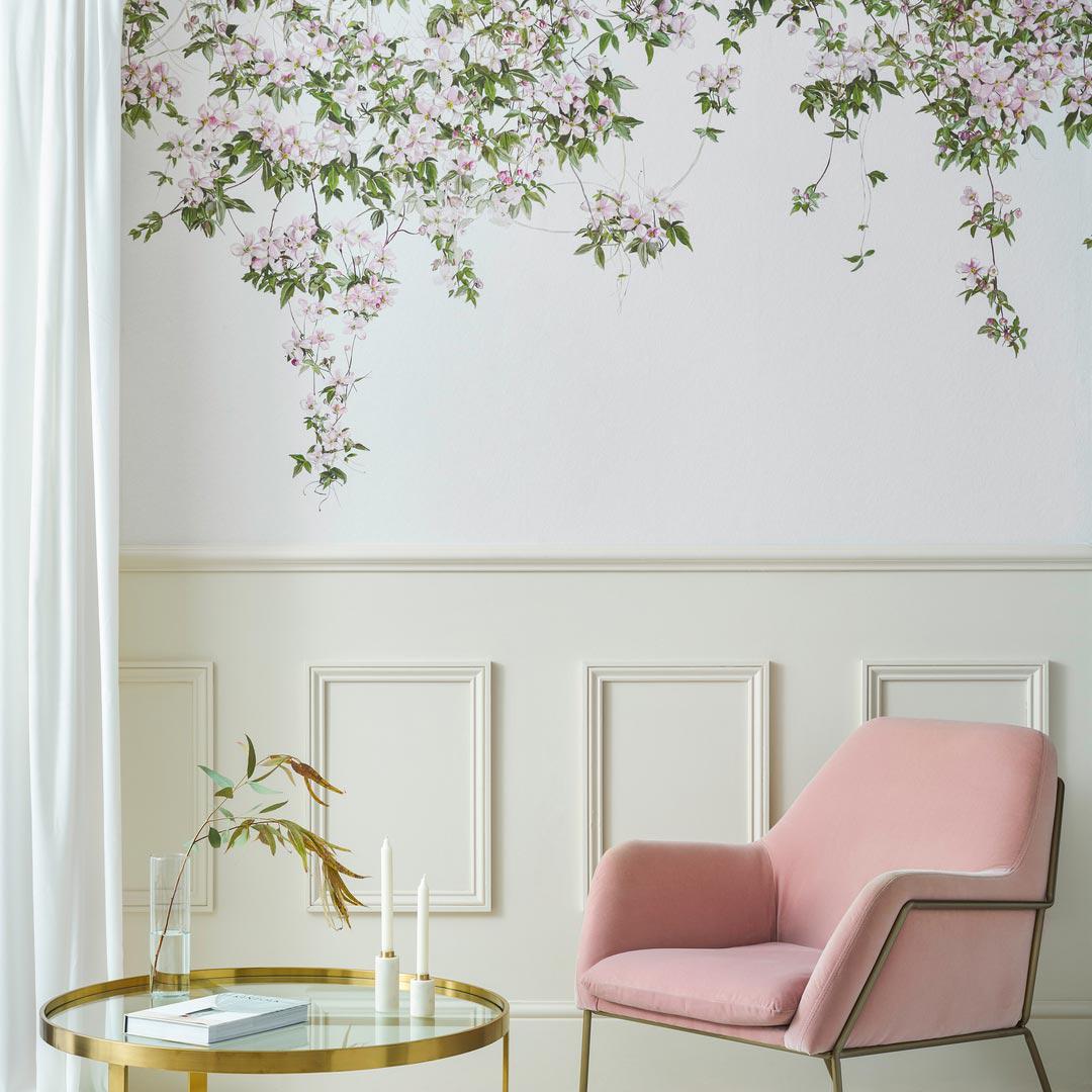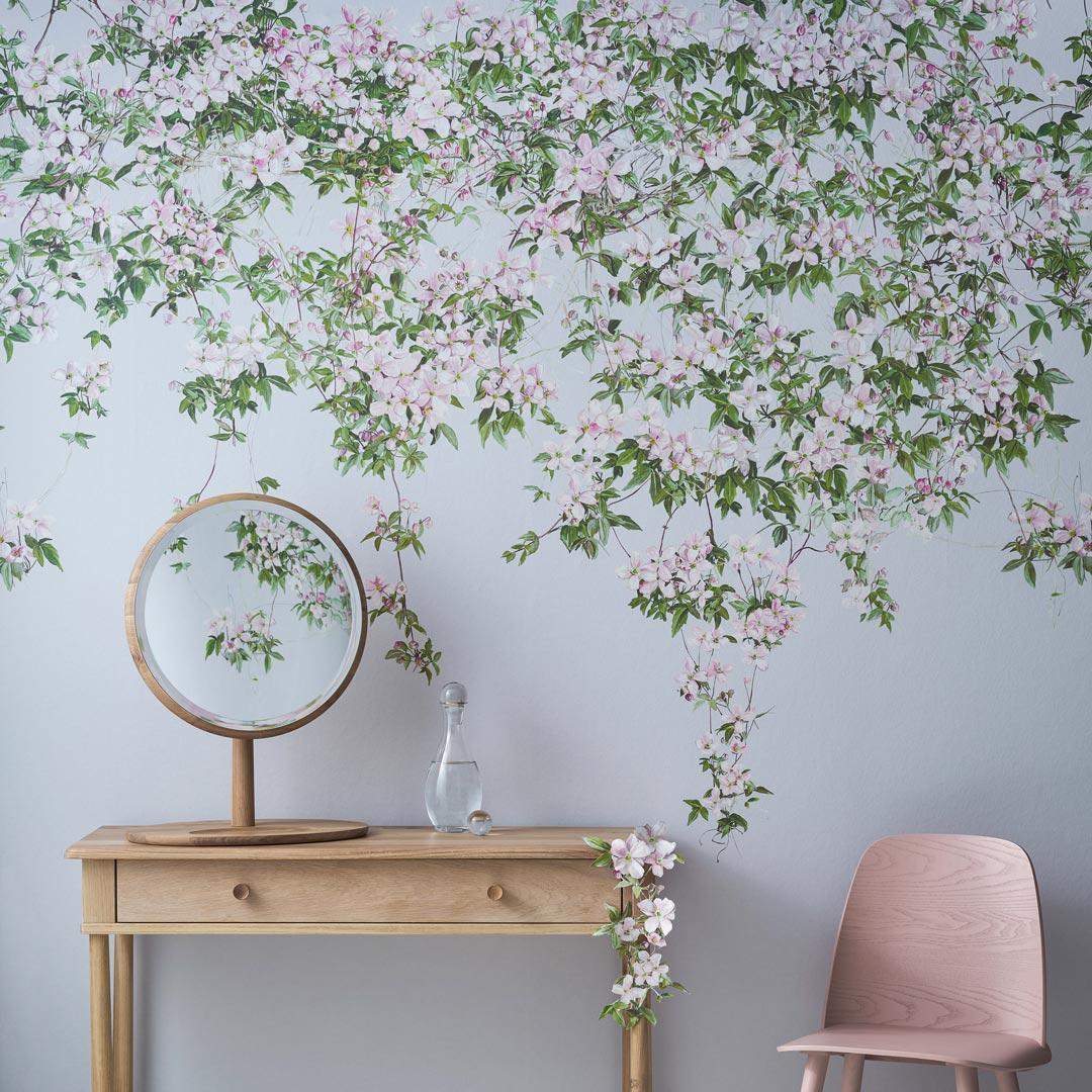 Painted at 100% scale, the Clematis Wallpaper Mural is authentically reproduced onto a luxurious, non-woven material. As a result, the tonal qualities on this wallpaper mural are almost indistinguishable from hand painted wallpapers. Choose from white, dusty blue & pink.
