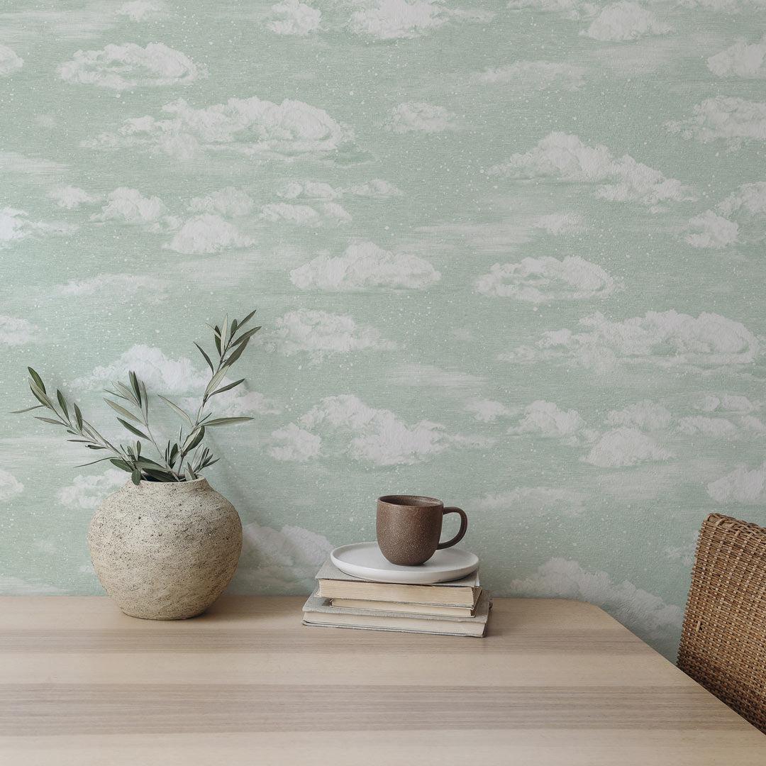 Imagine being surrounded by calming, ethereal skies, bringing the beauty of nature right into your home. Now you can with Clouds Wallpaper in Green by Sian Zeng. This exquisite illustration offers a sense of serenity and inspiration to any space.